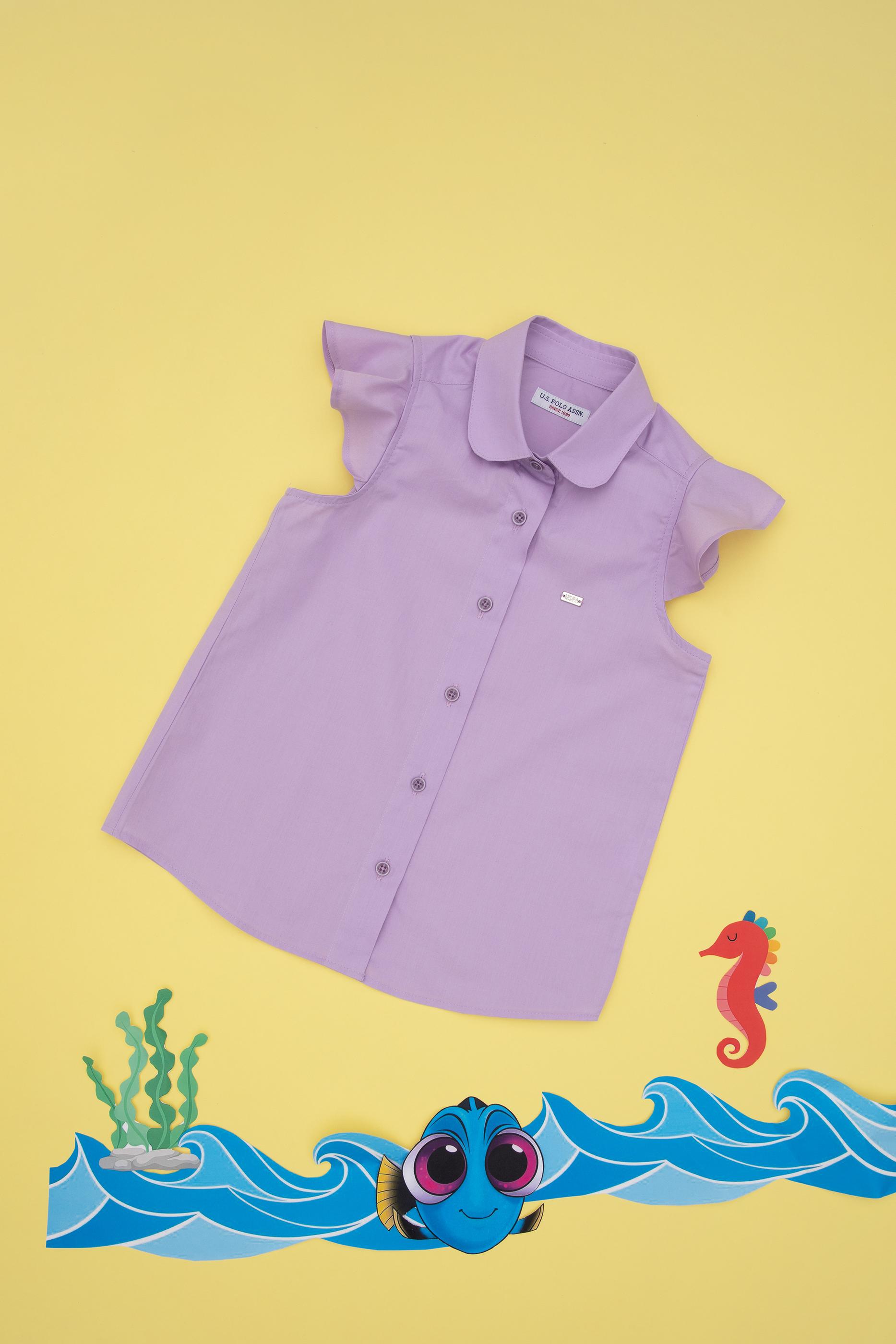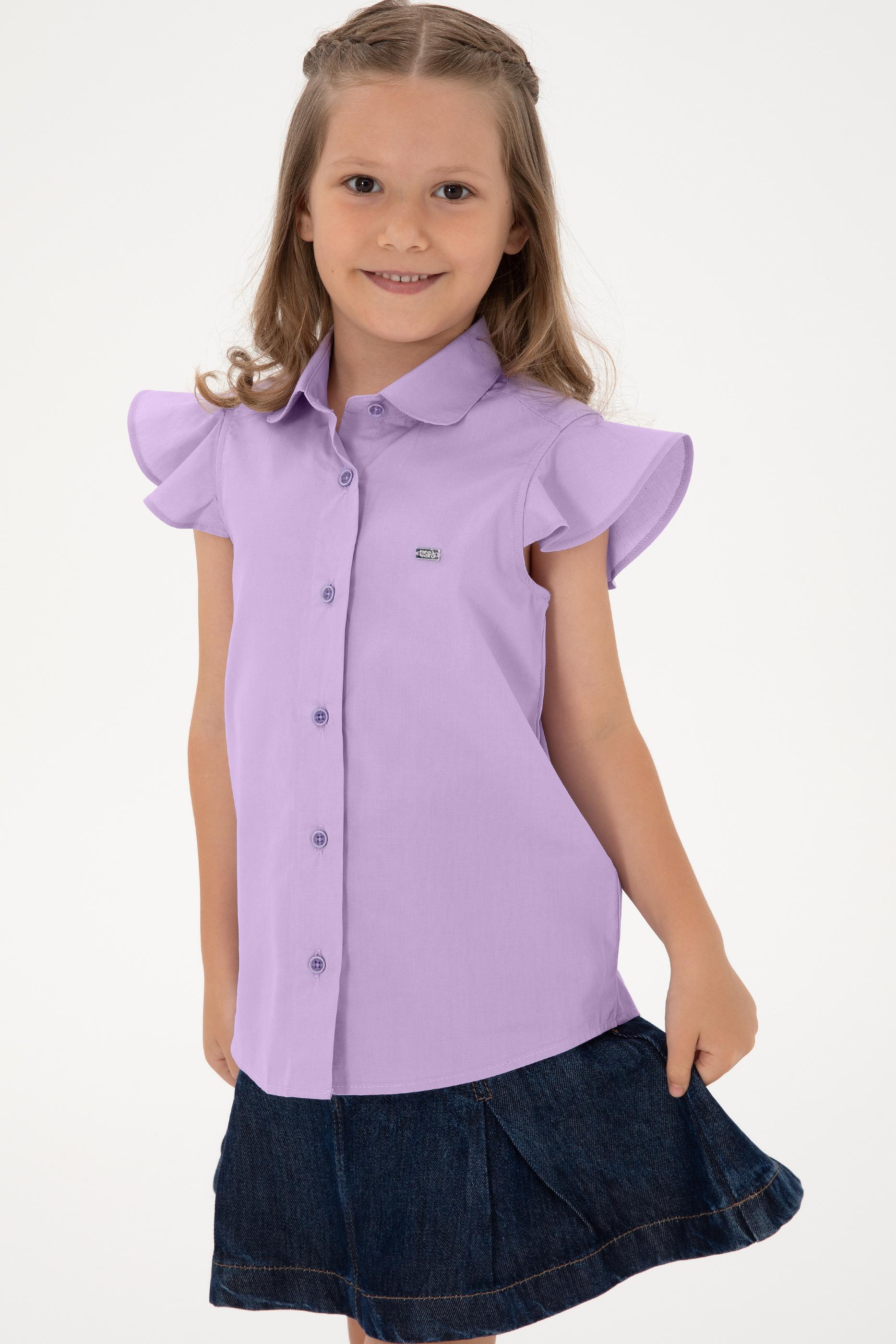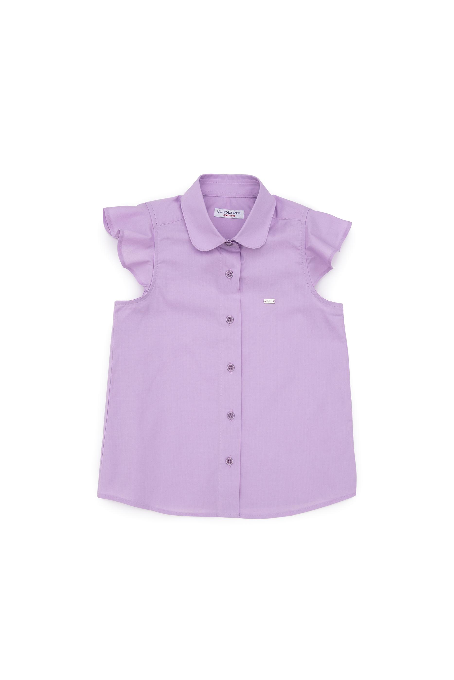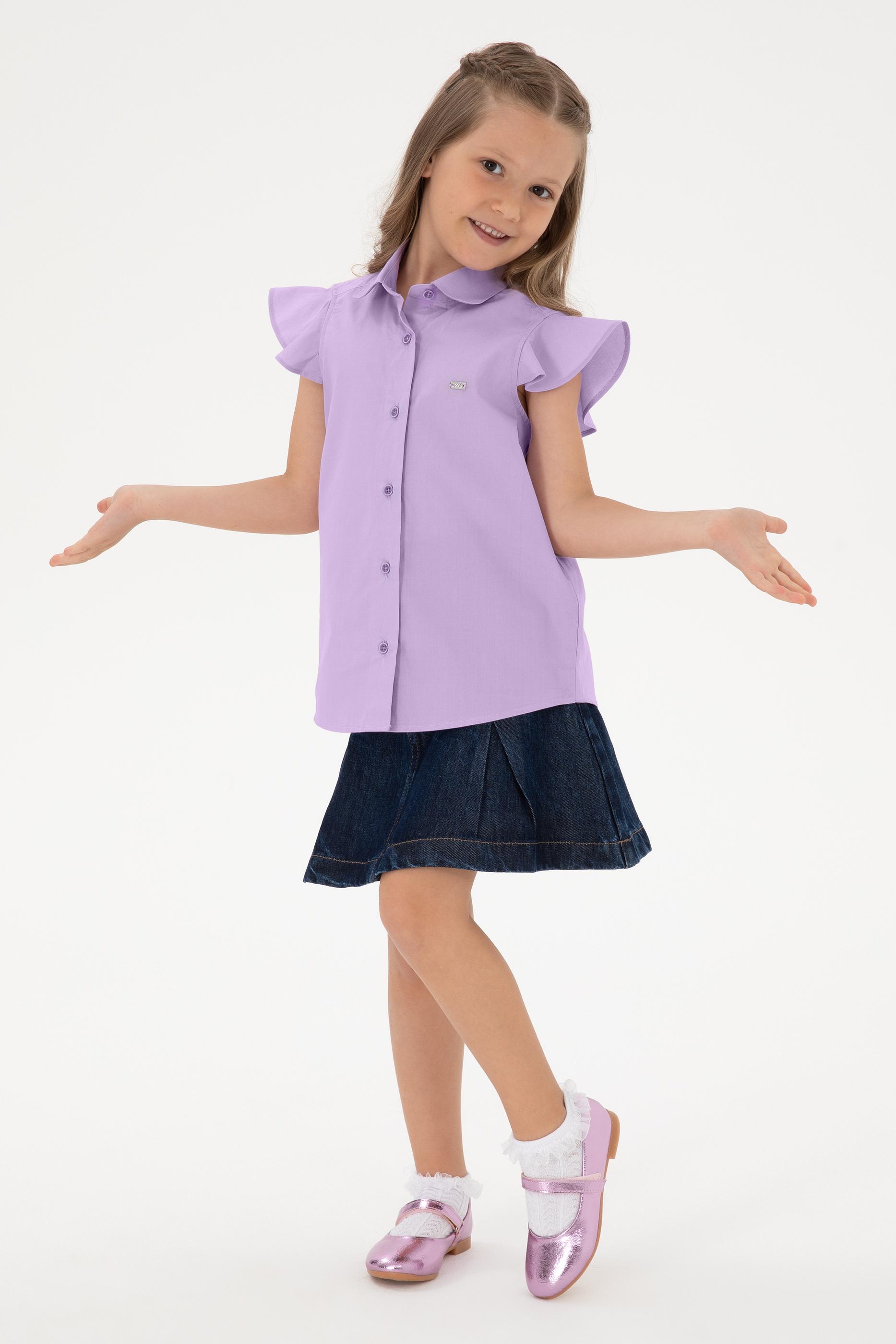 - Kız Çocuk Lila Fırfır Kol Detaylı Pamuk Gömlek