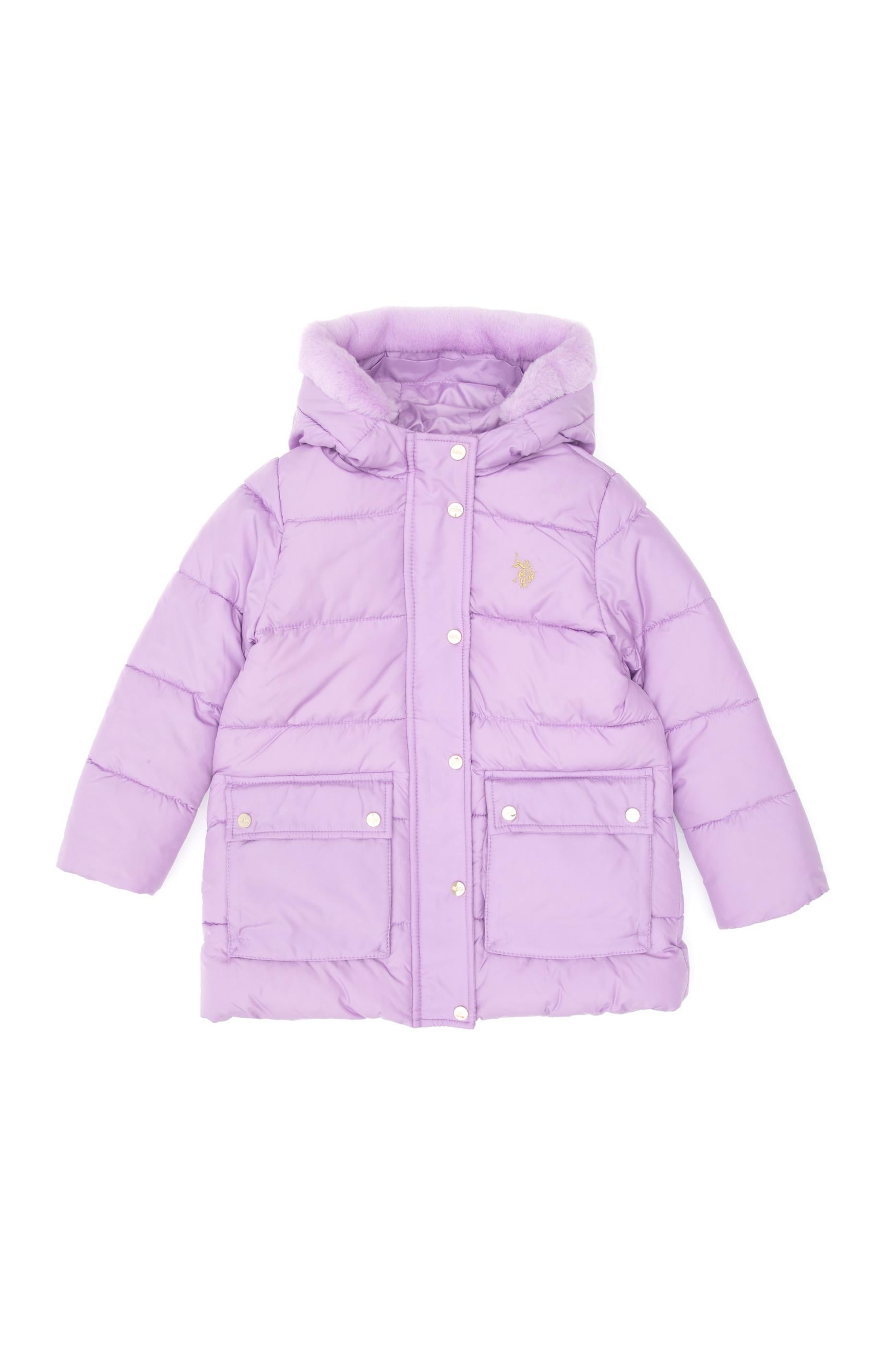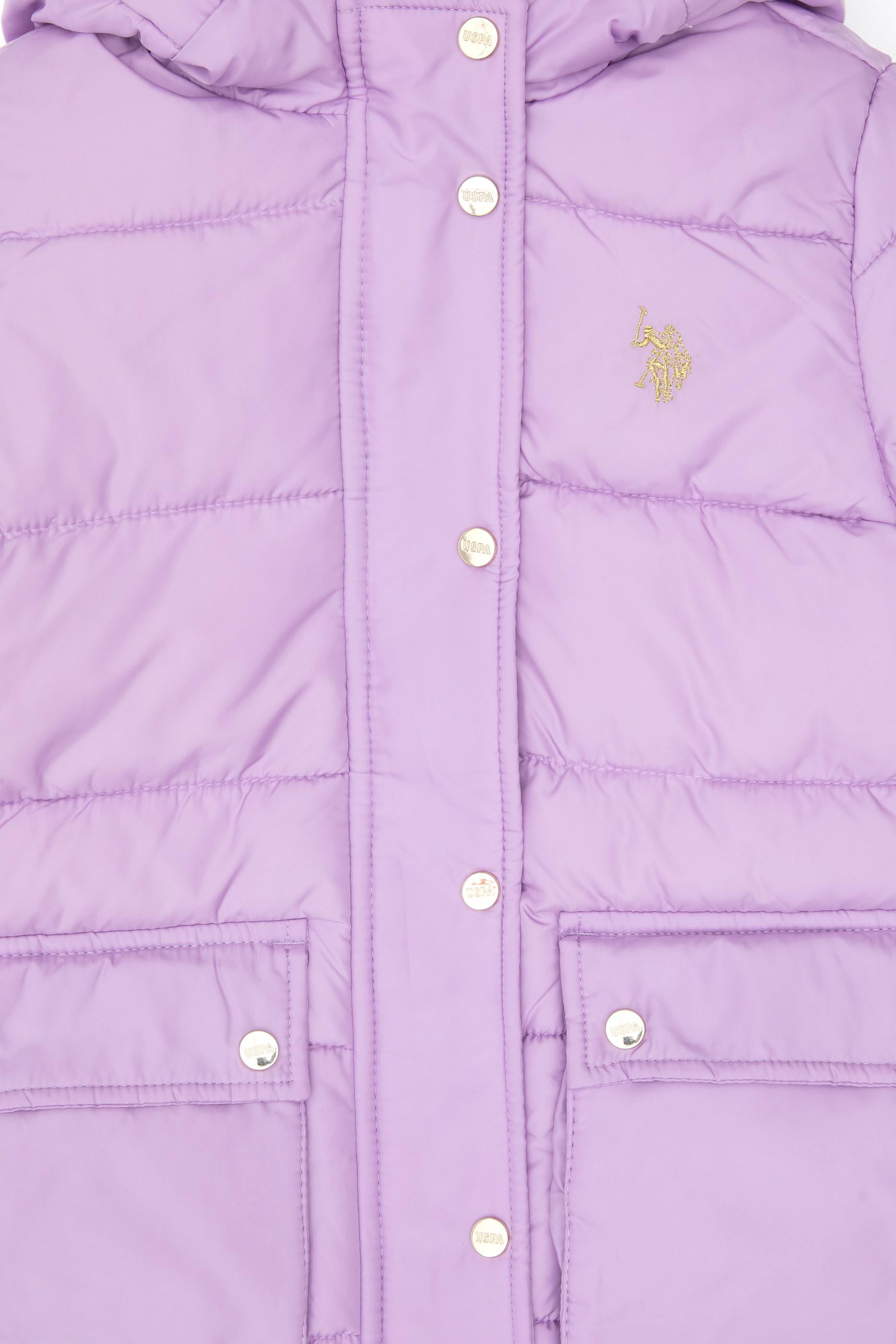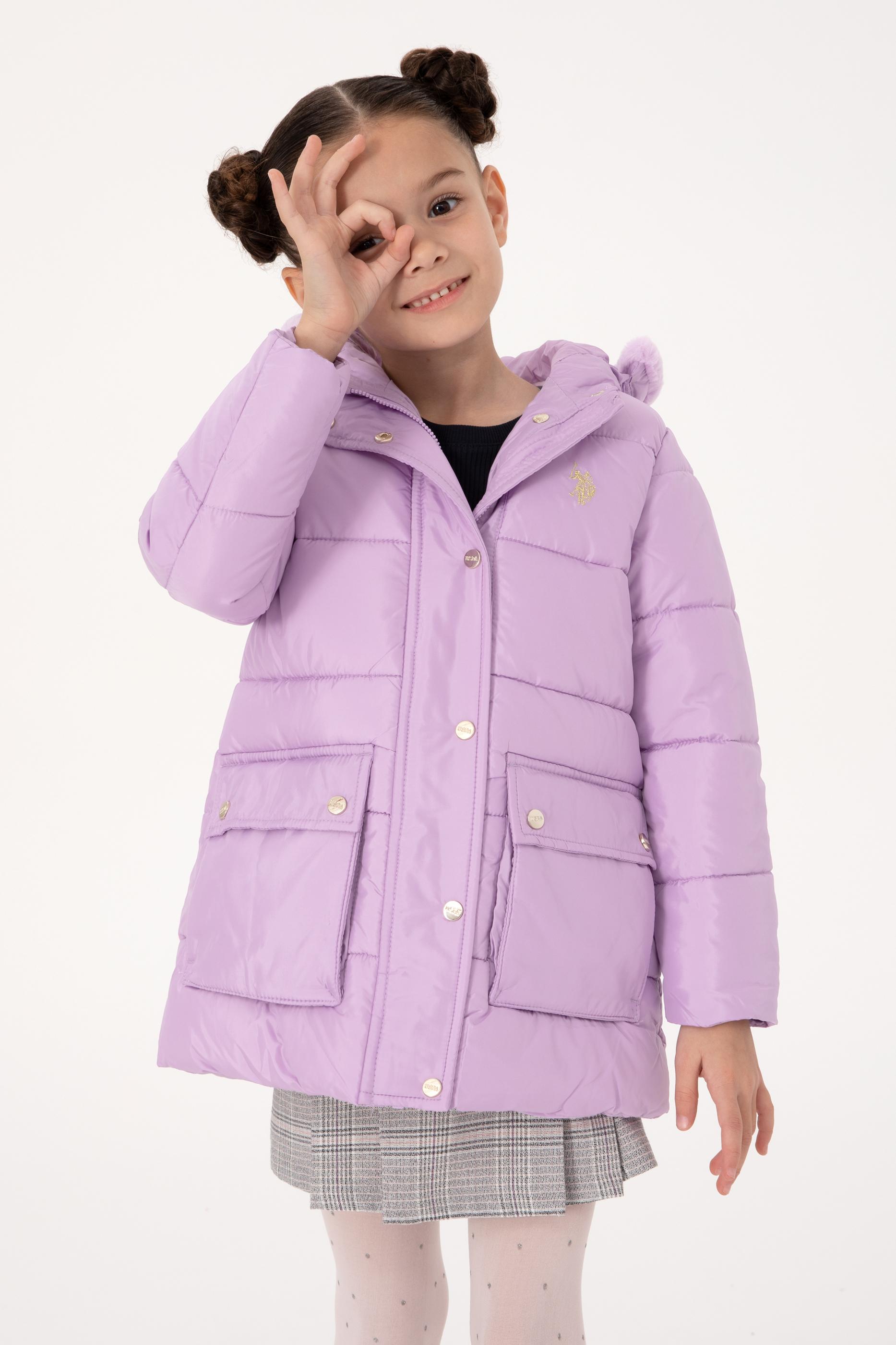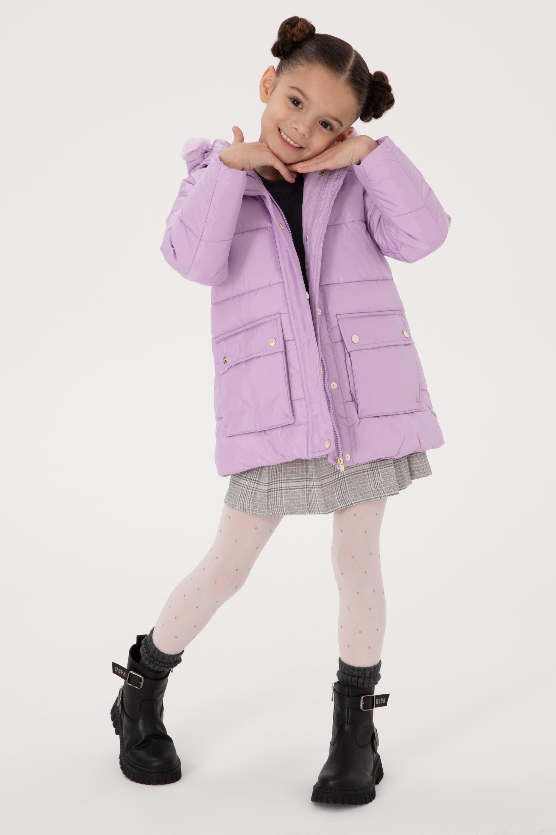 Kız Çocuk Lila Kapüşonlu Şişme Mont