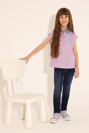 - Kız Çocuk Lila Polo Yaka Kolsuz Tişört