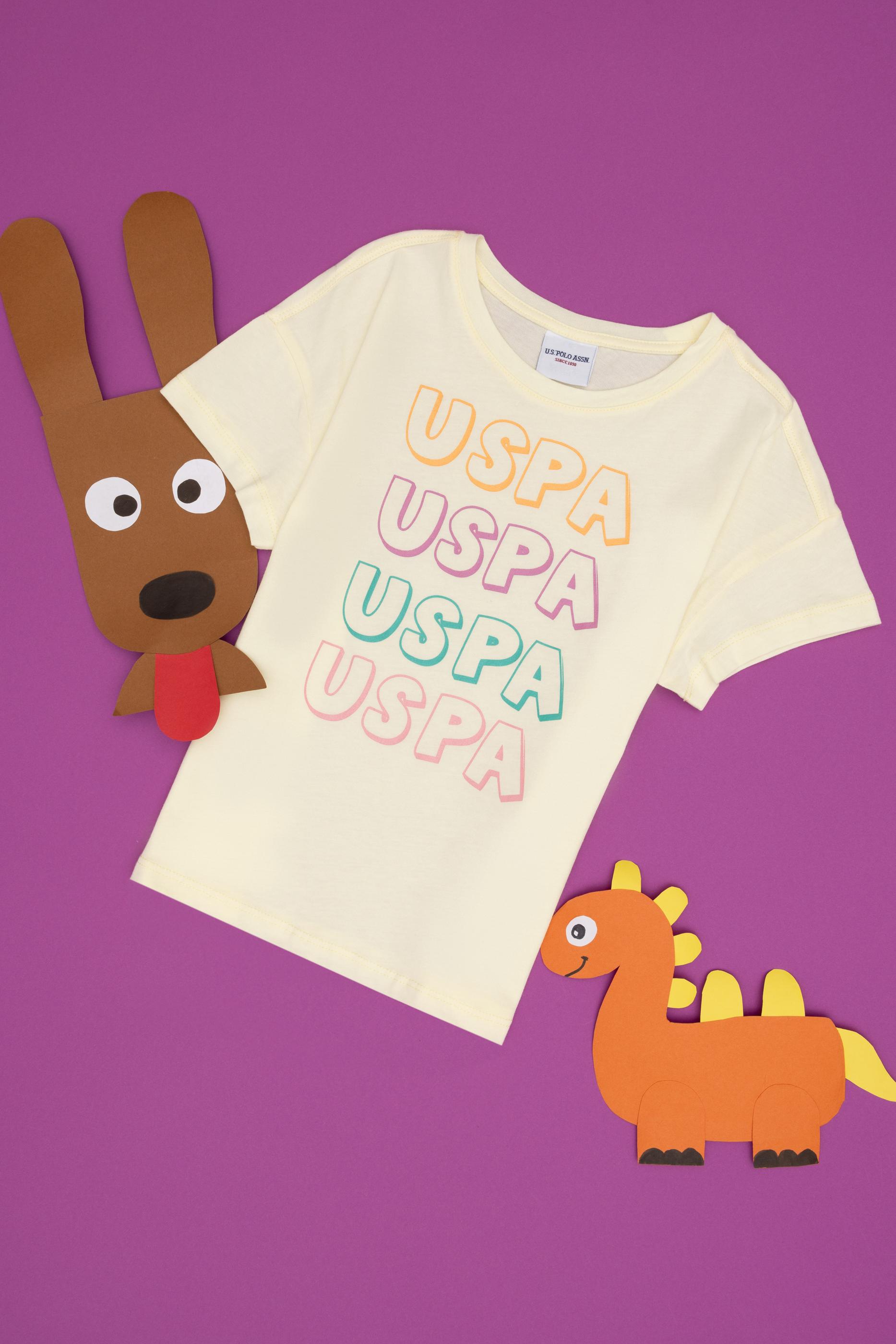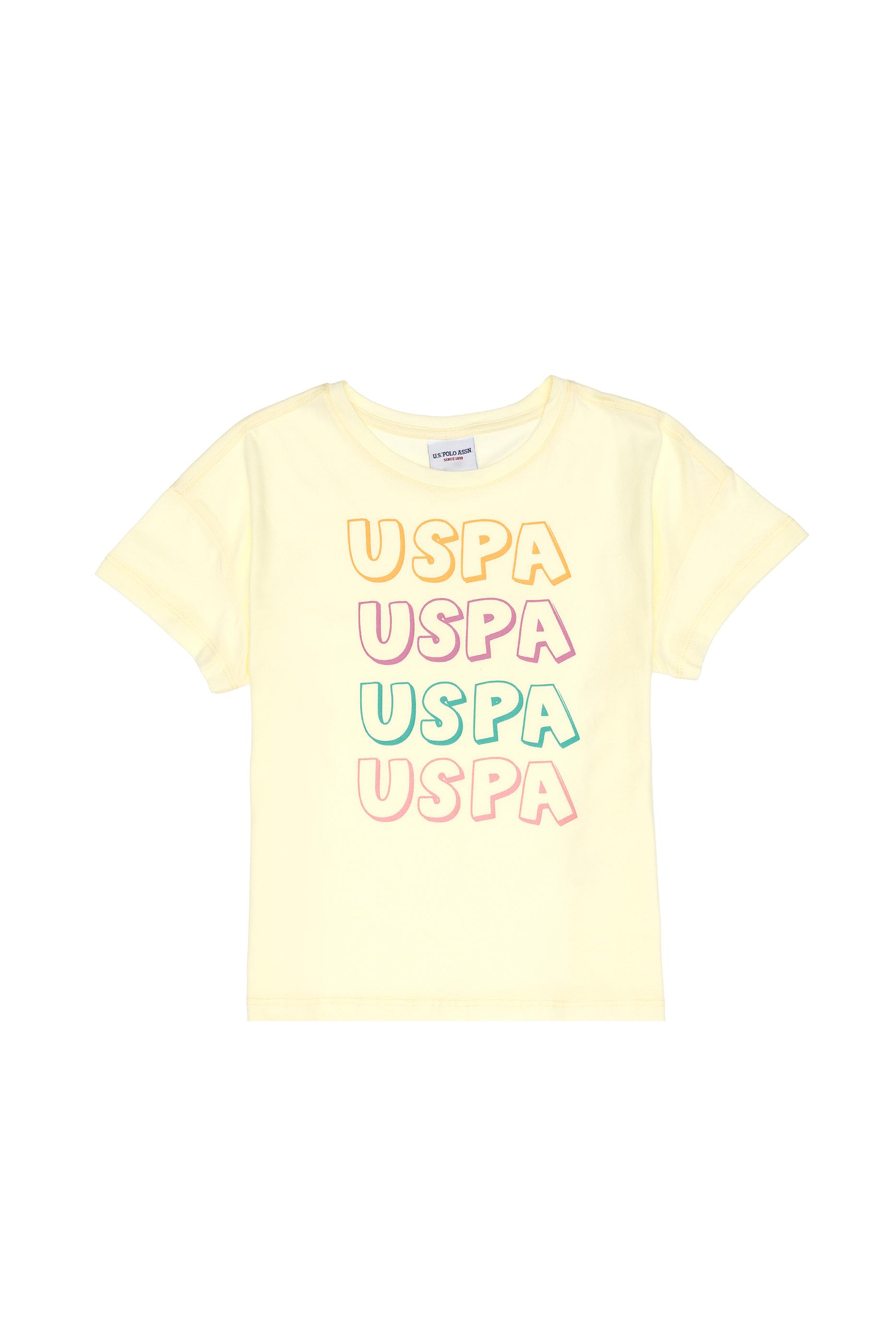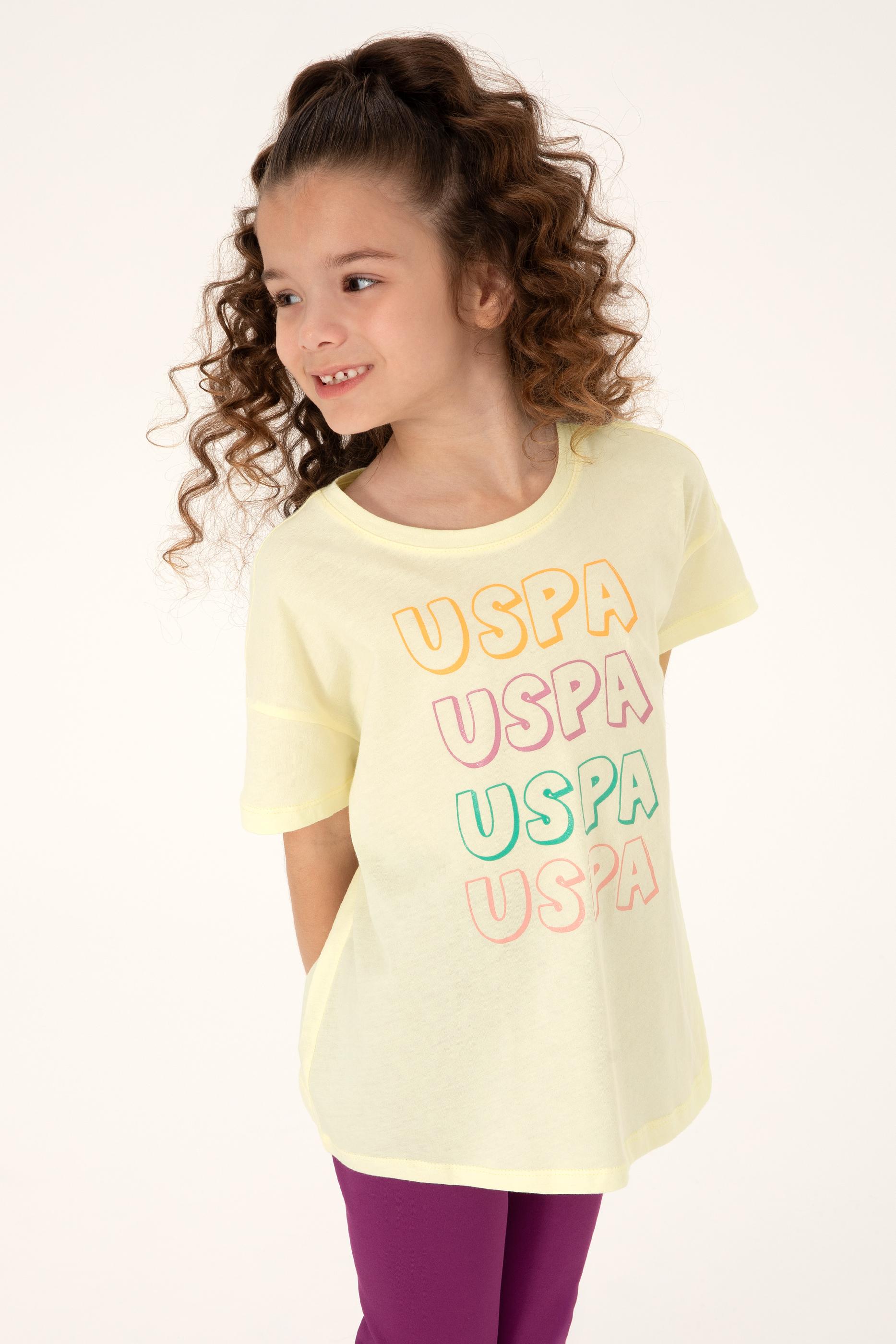 Kız Çocuk Limon Bisiklet Yaka Pamuk Renkli Uspa Baskılı Tişört