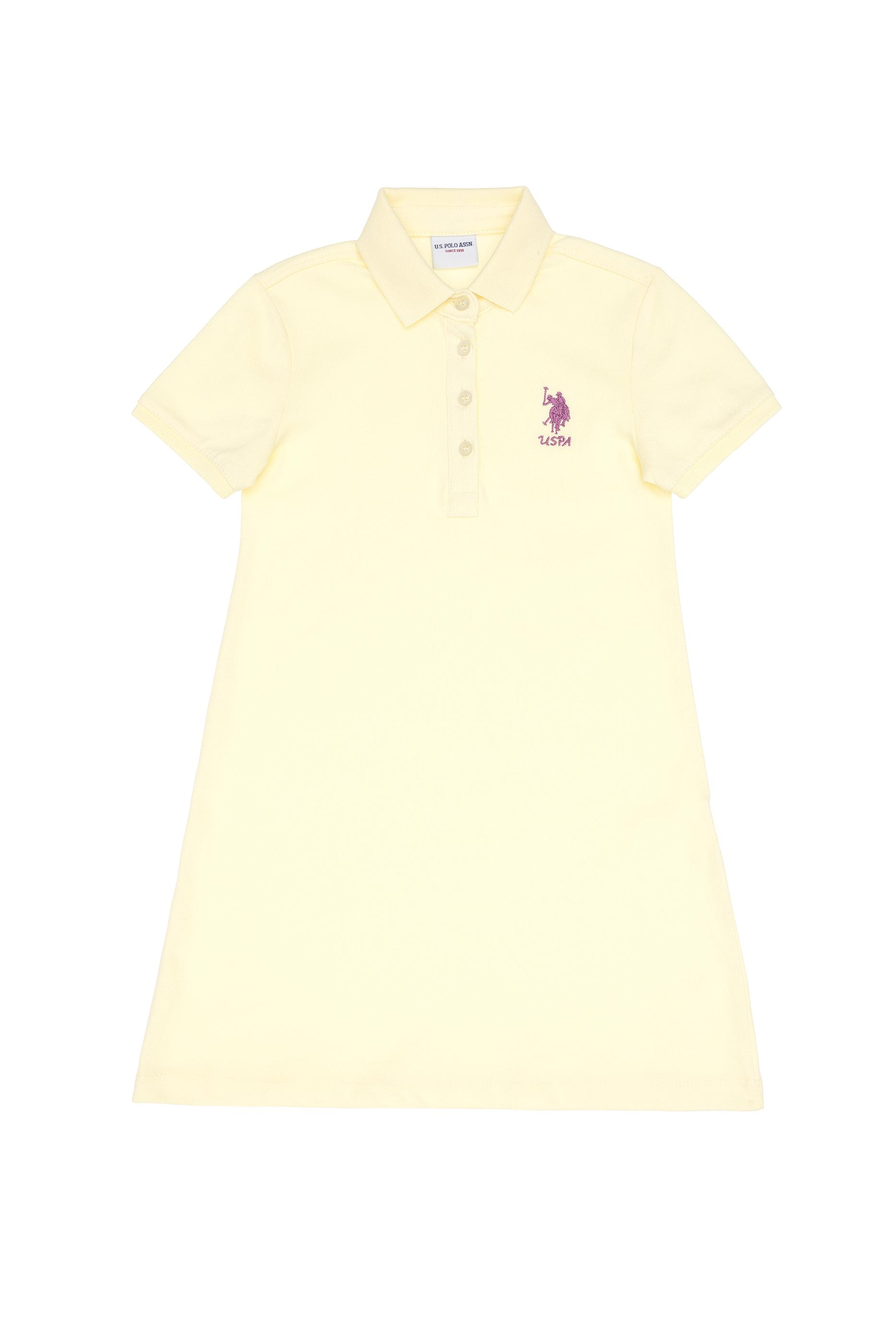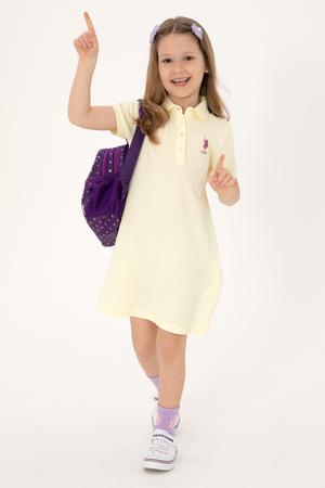 - Kız Çocuk Limon Polo Yaka Kısa Kol A-Form Basic Örme Elbise