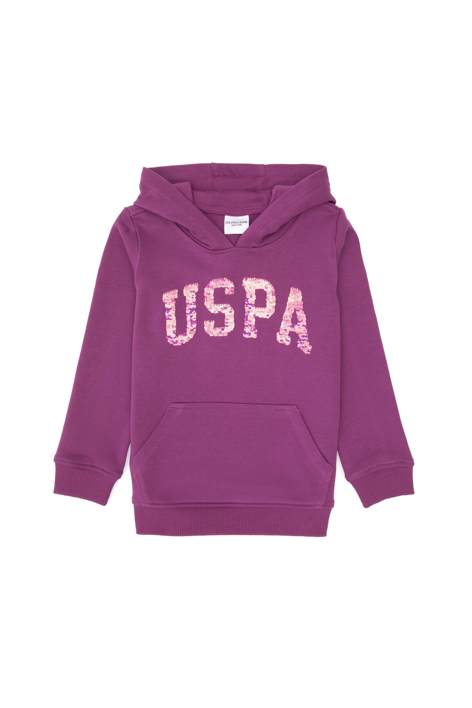 Kız Çocuk Menekşe Payet İşlemeli Kapüşonlu Basic Sweatshirt