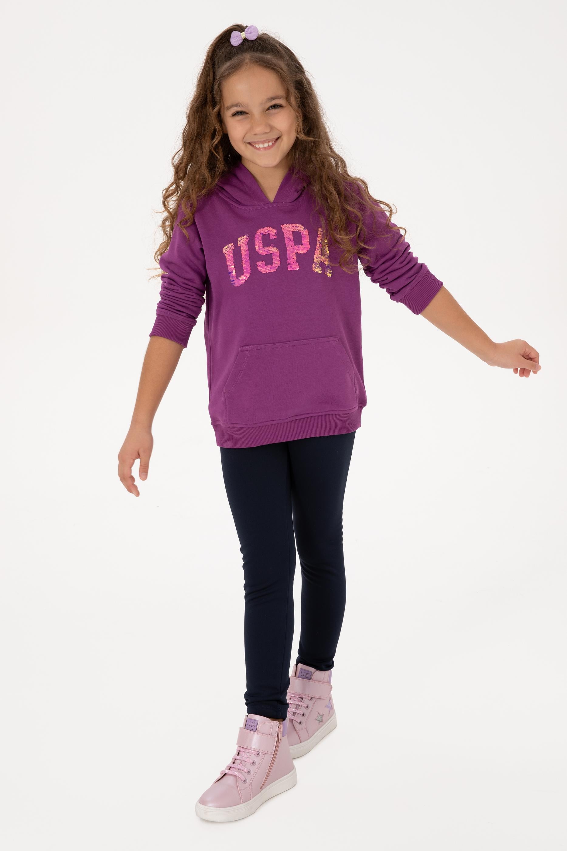 - Kız Çocuk Menekşe Payet İşlemeli Kapüşonlu Basic Sweatshirt