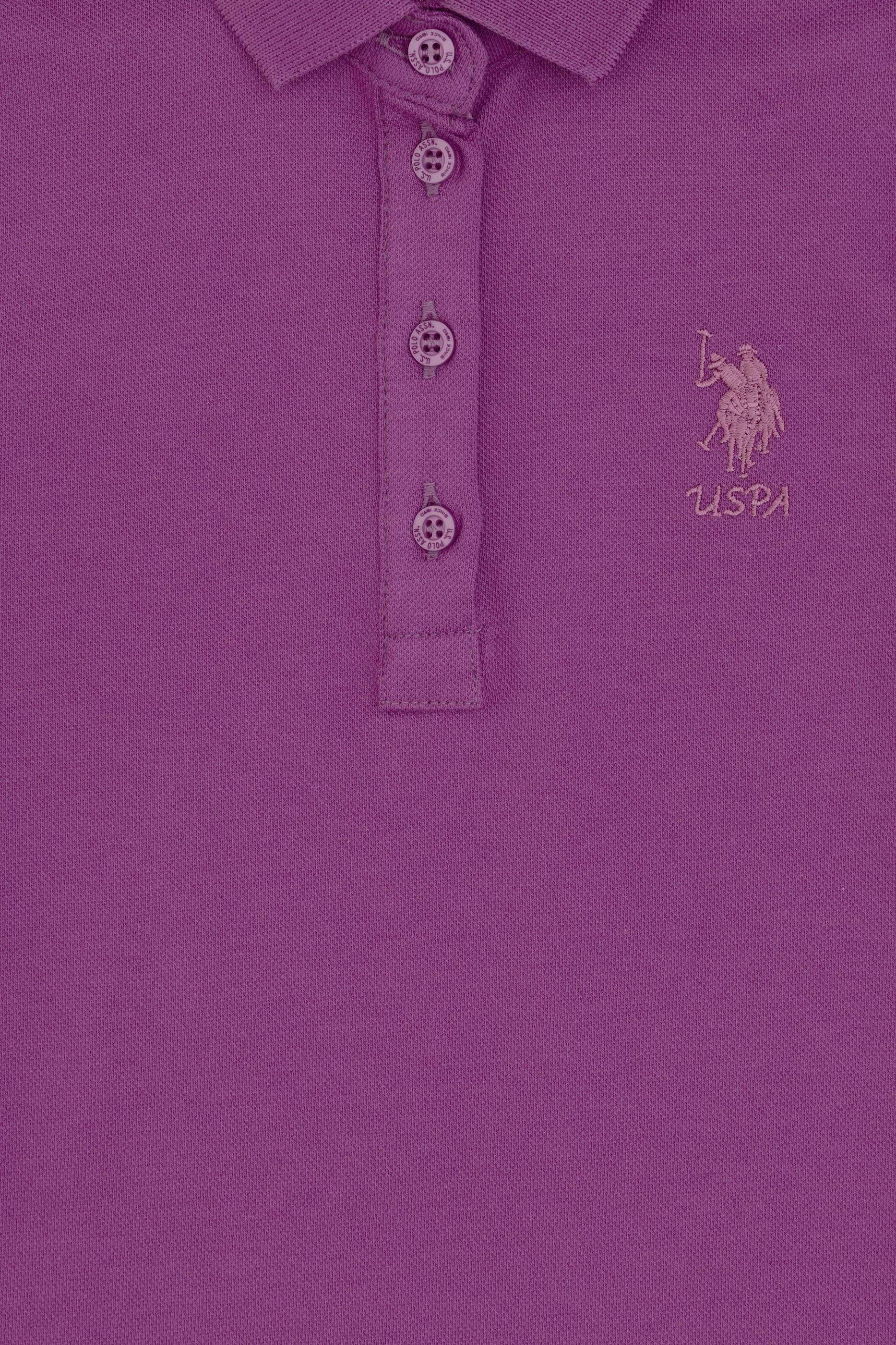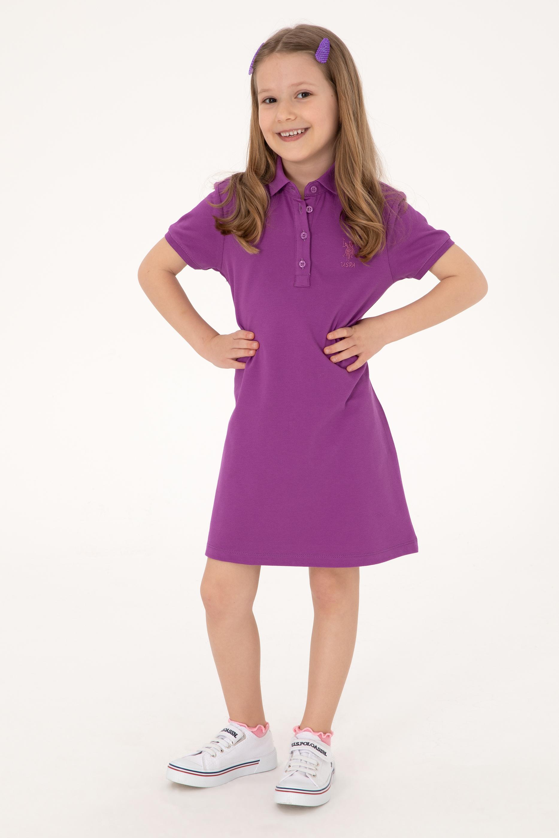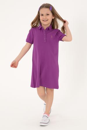 - Kız Çocuk Menekşe Polo Yaka Kısa Kol A-Form Basic Örme Elbise