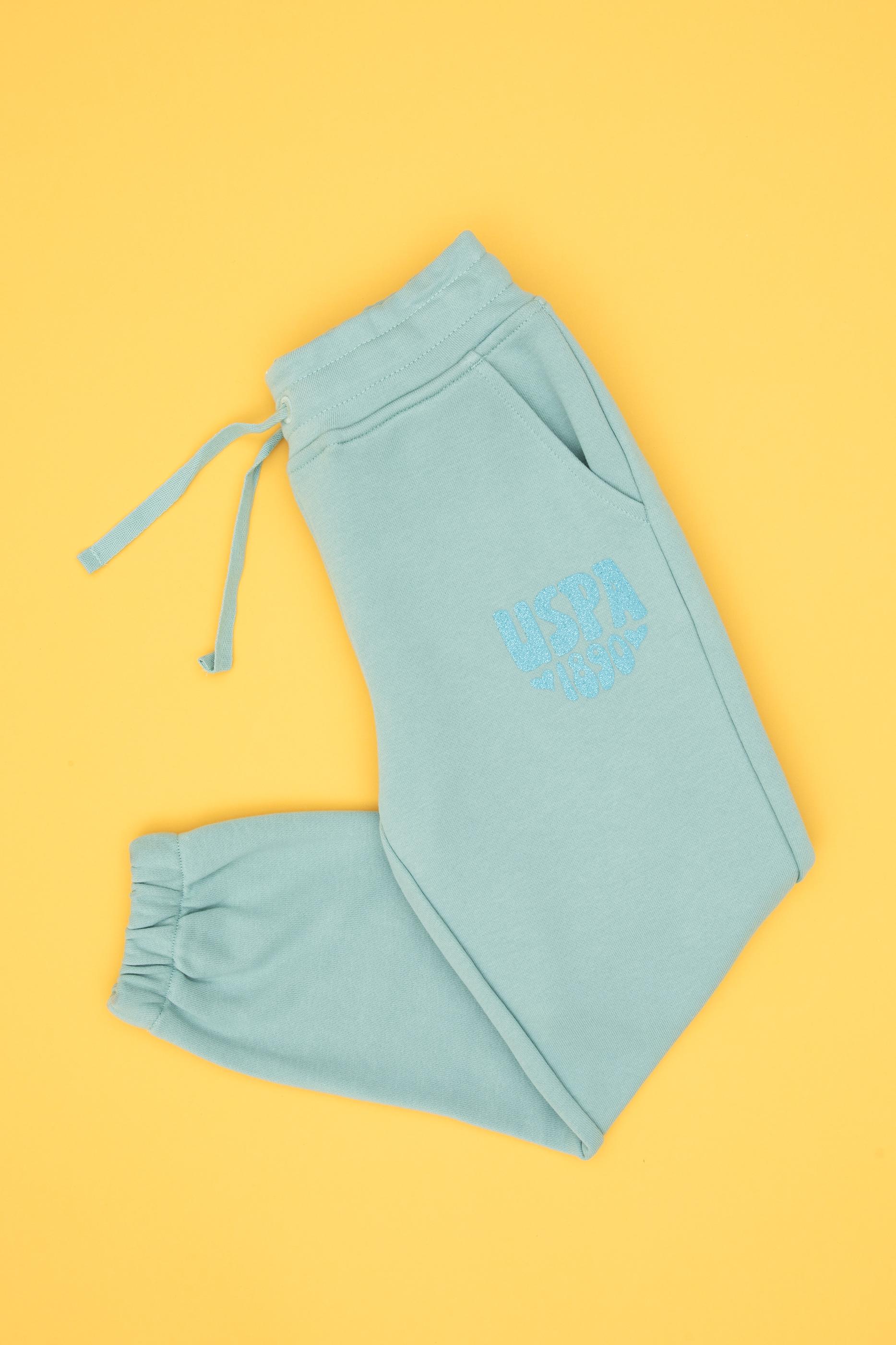 - Kız Çocuk Mint Simli Baskı Detaylı Jogger Eşofman Altı