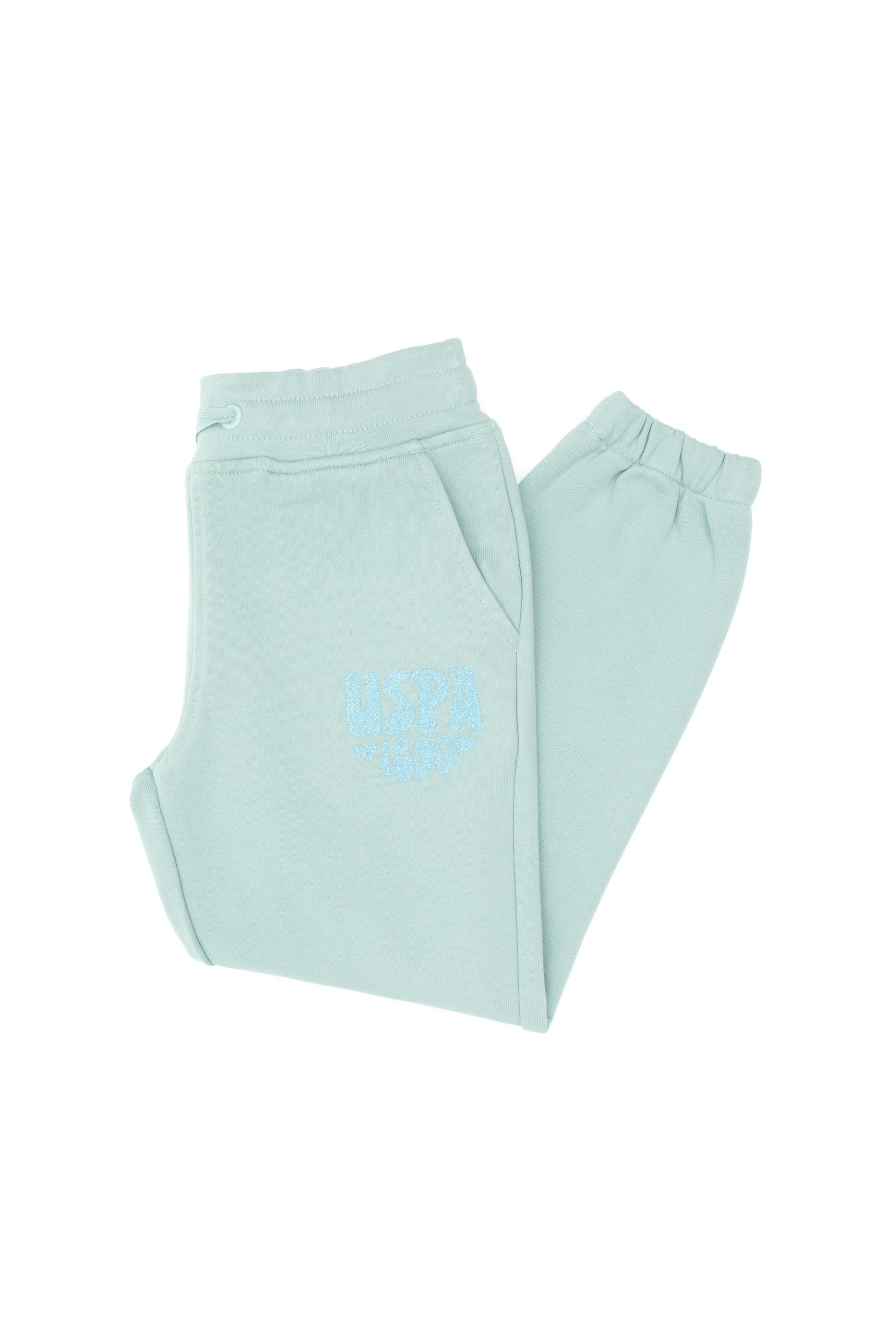 Kız Çocuk Mint Simli Baskı Detaylı Jogger Eşofman Altı