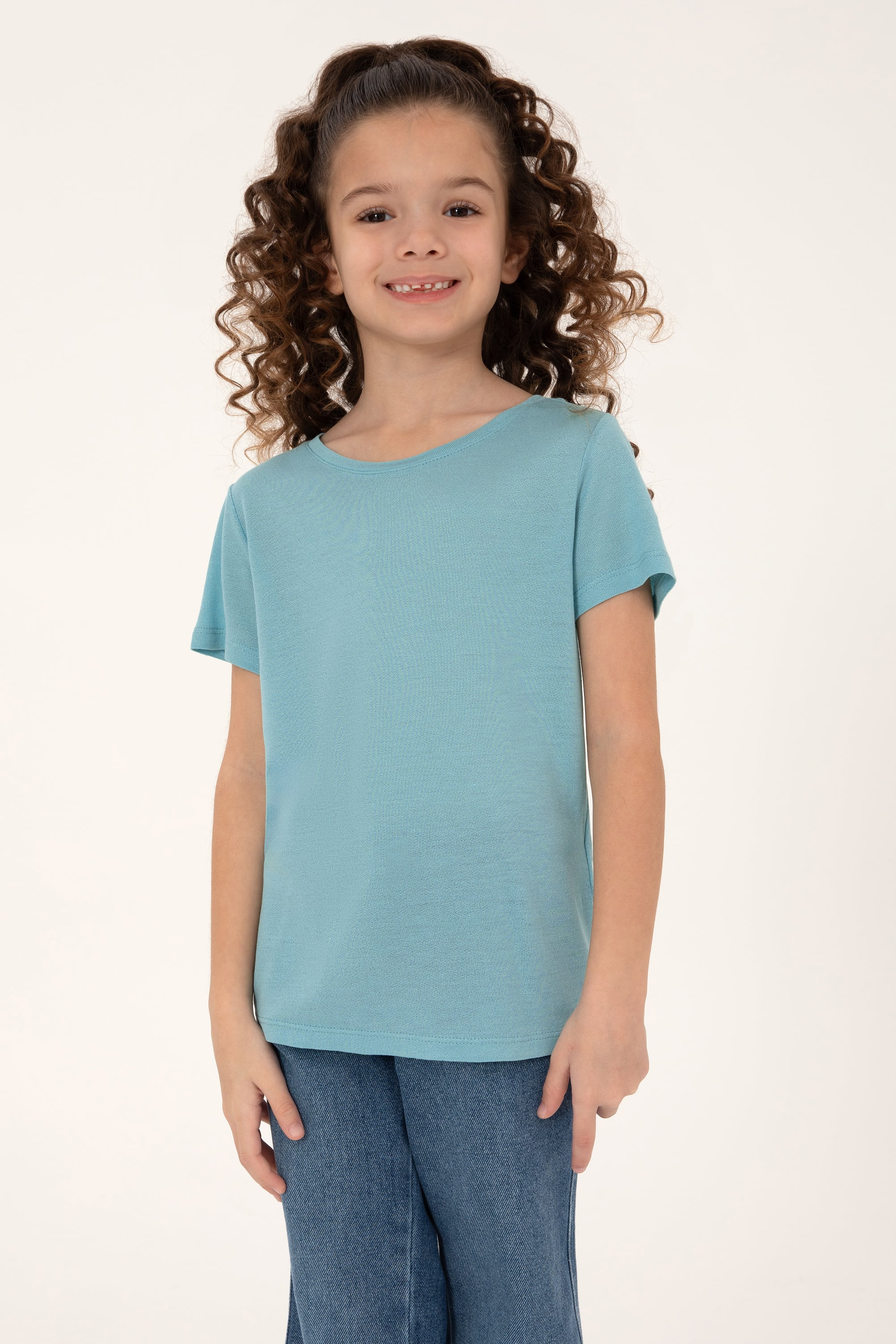 - Kız Çocuk Mint Bisiklet Yaka Örme Tişört
