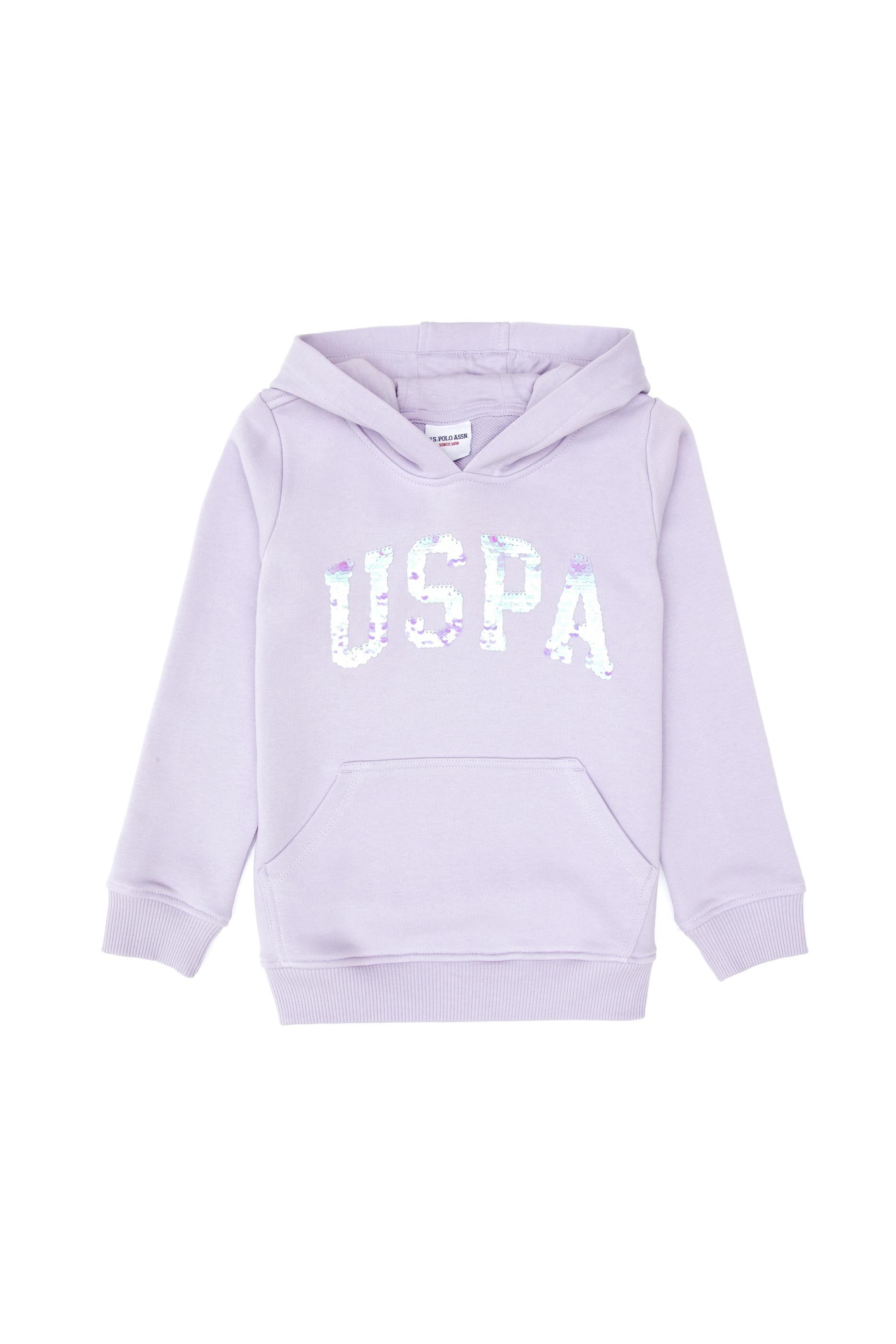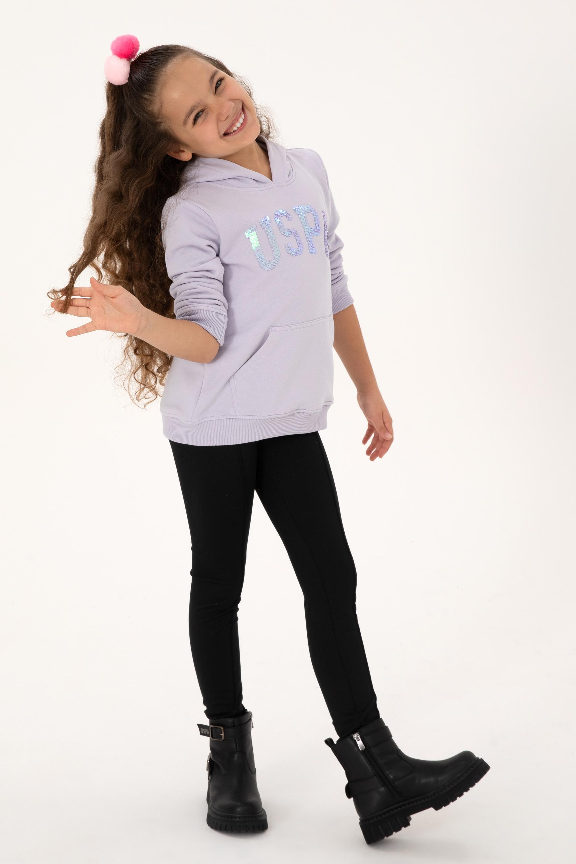 - Kız Çocuk Lila Payet İşlemeli Kapüşonlu Basic Sweatshirt