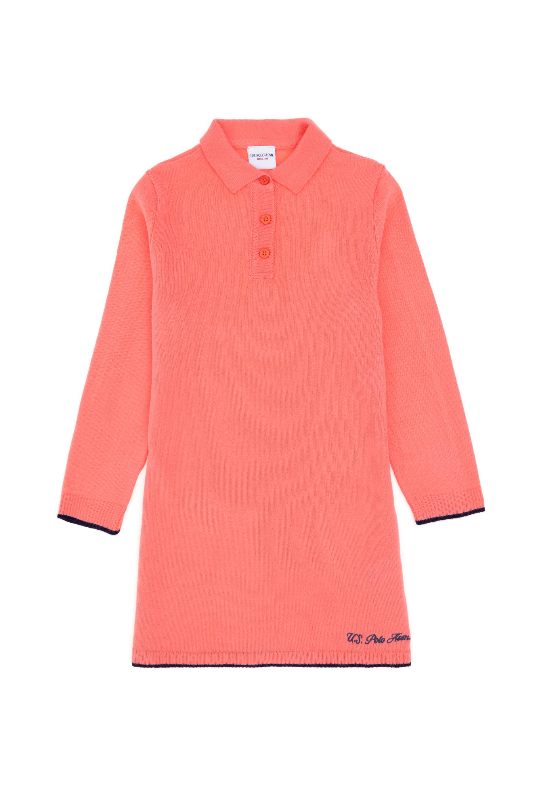 Kız Çocuk Nar Çiçeği Polo Yaka Triko Elbise