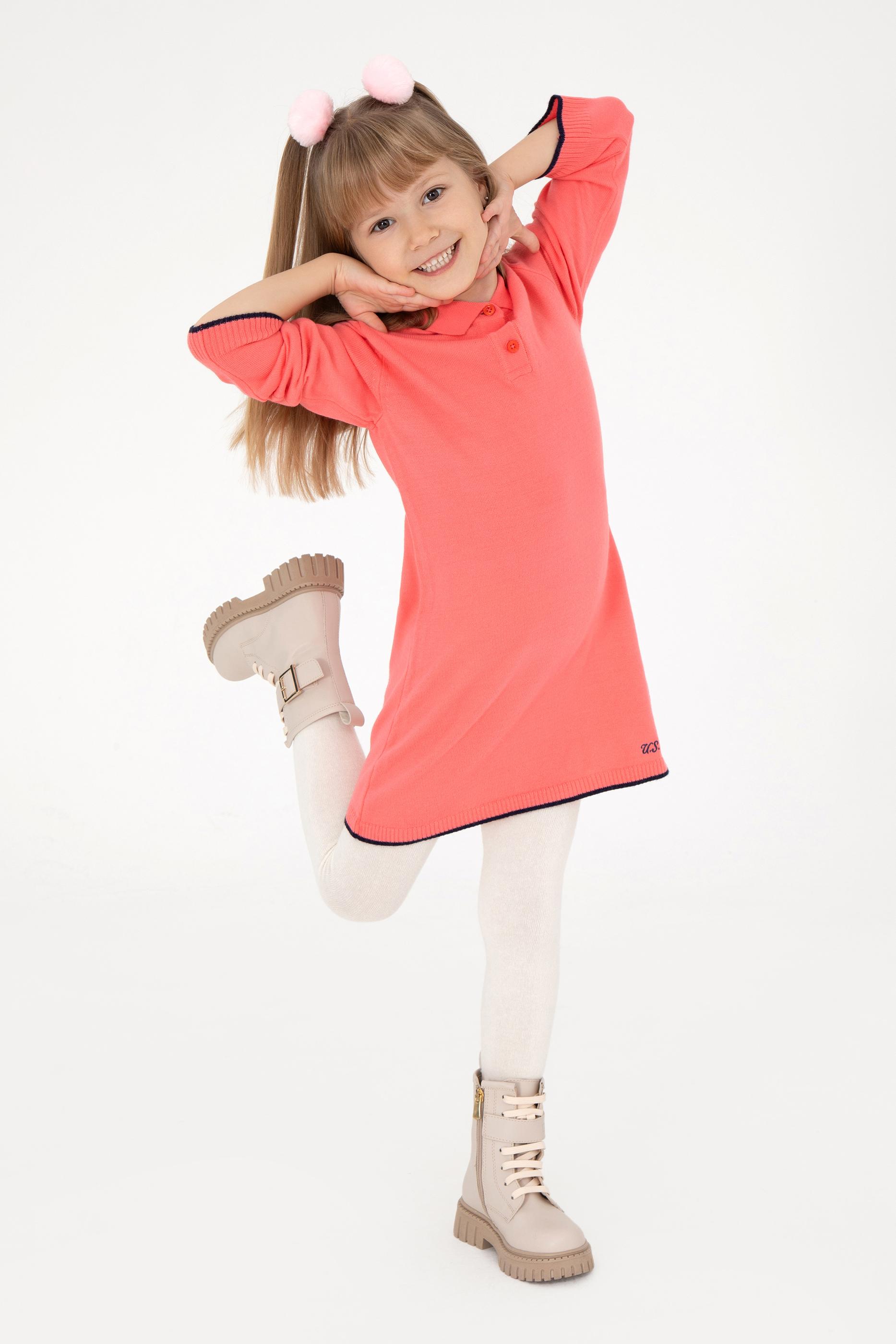 - Kız Çocuk Nar Çiçeği Polo Yaka Triko Elbise