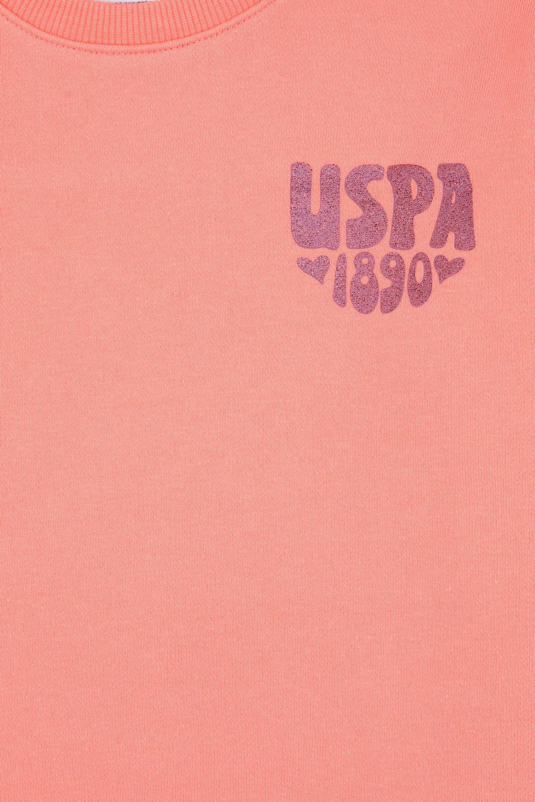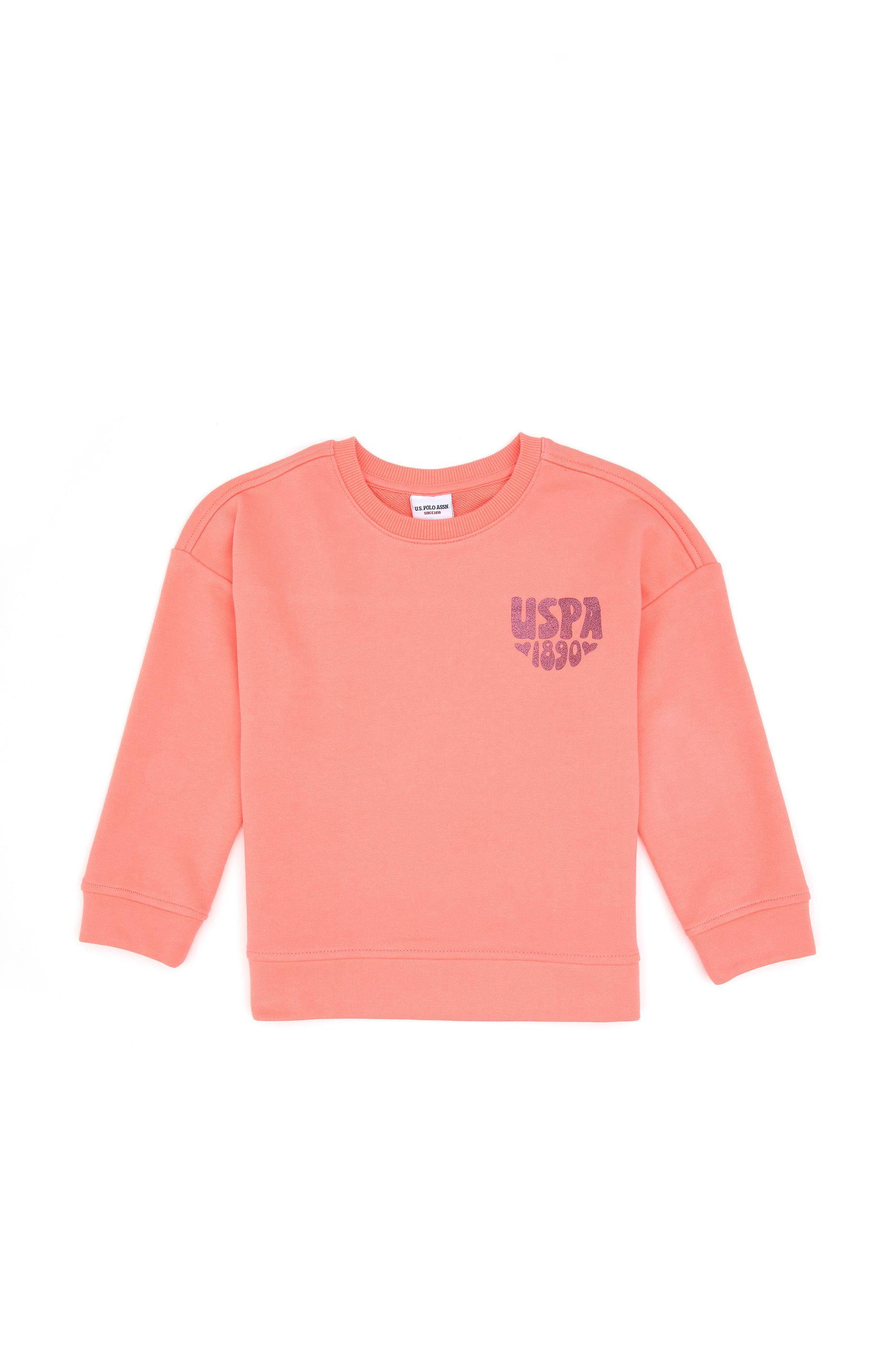 - Kız Çocuk Neon Pembe Simli Baskı Detaylı Bisiklet Yaka Basic Sweatshirt