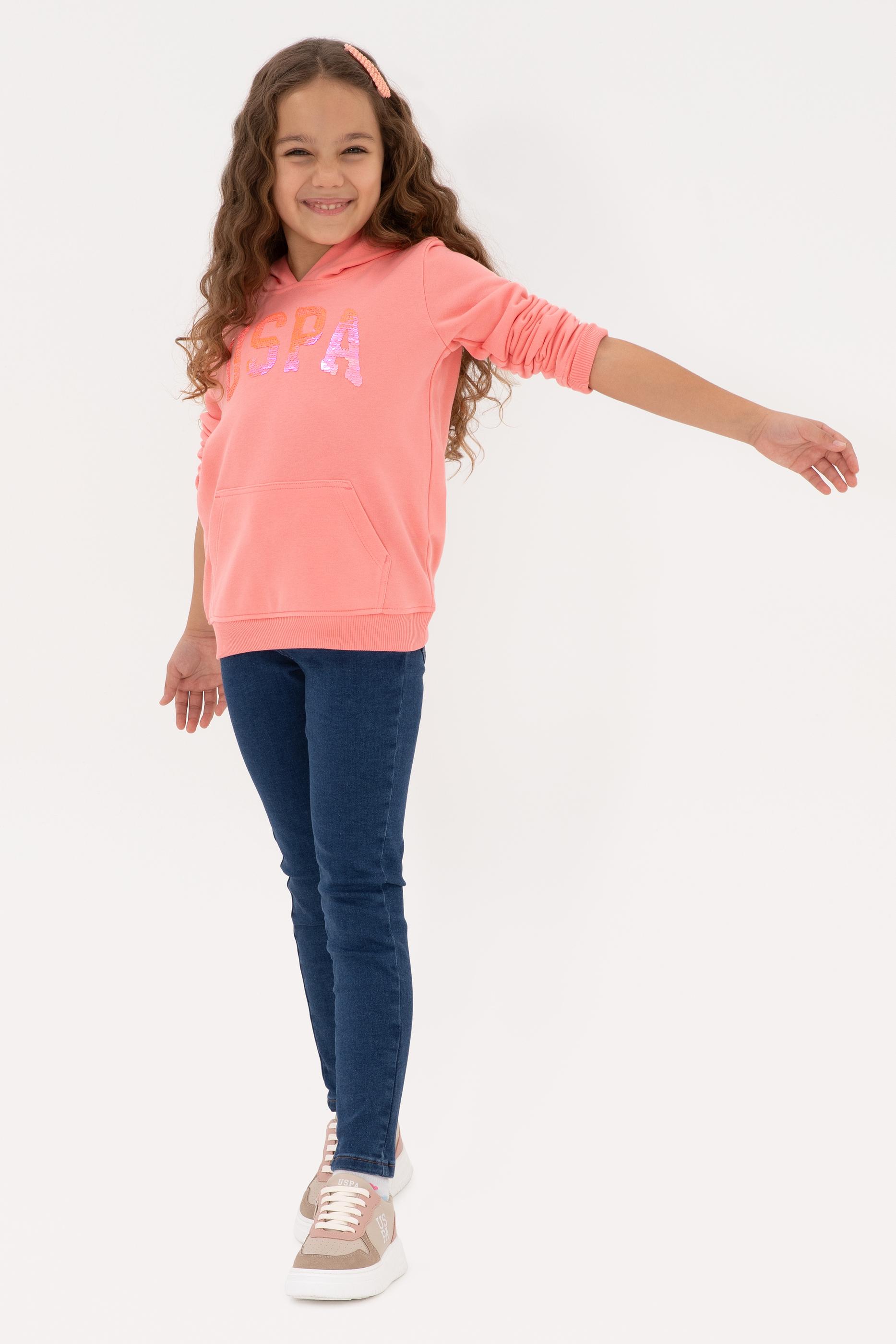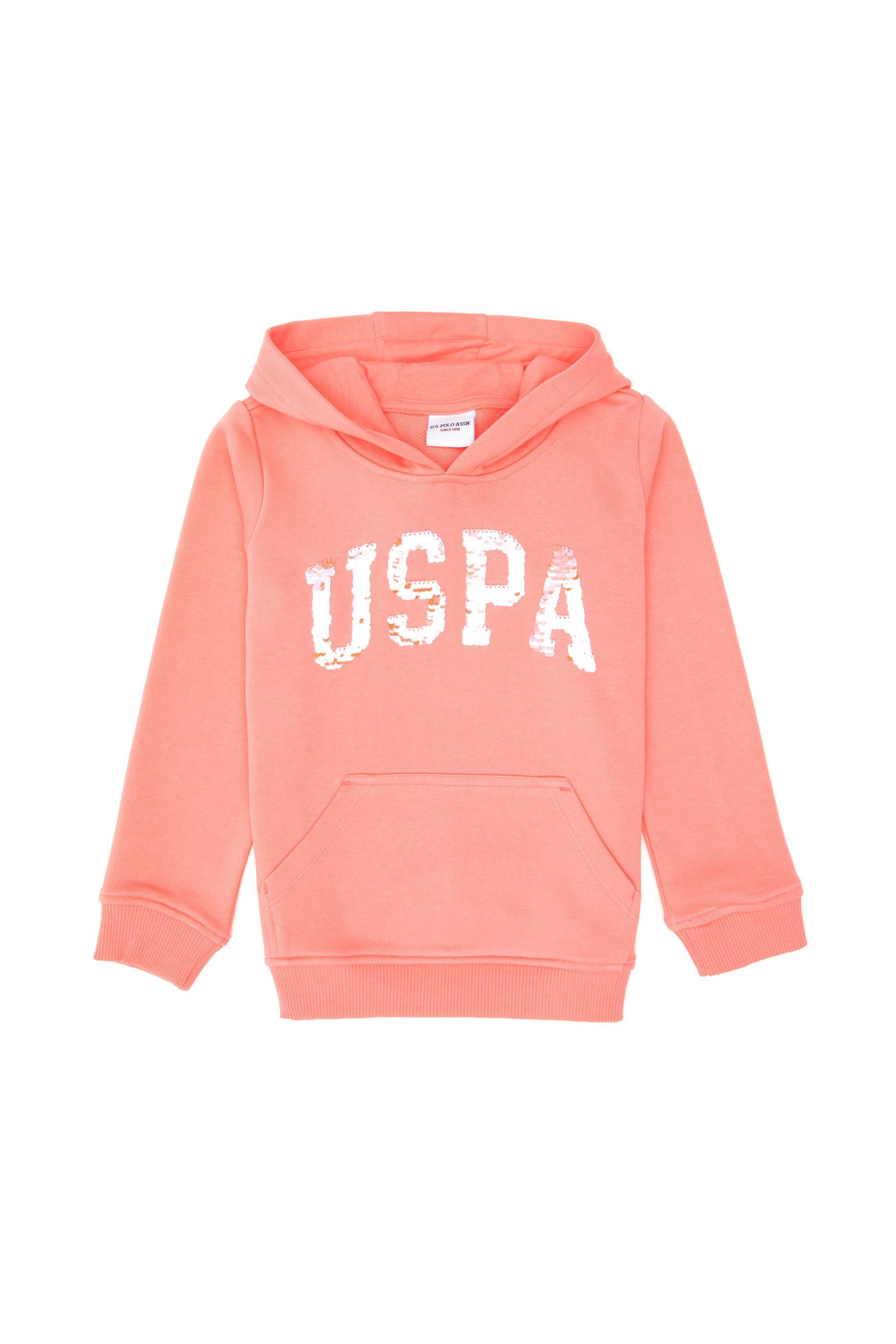 - Kız Çocuk Neon Pembe Payet İşlemeli Kapüşonlu Basic Sweatshirt