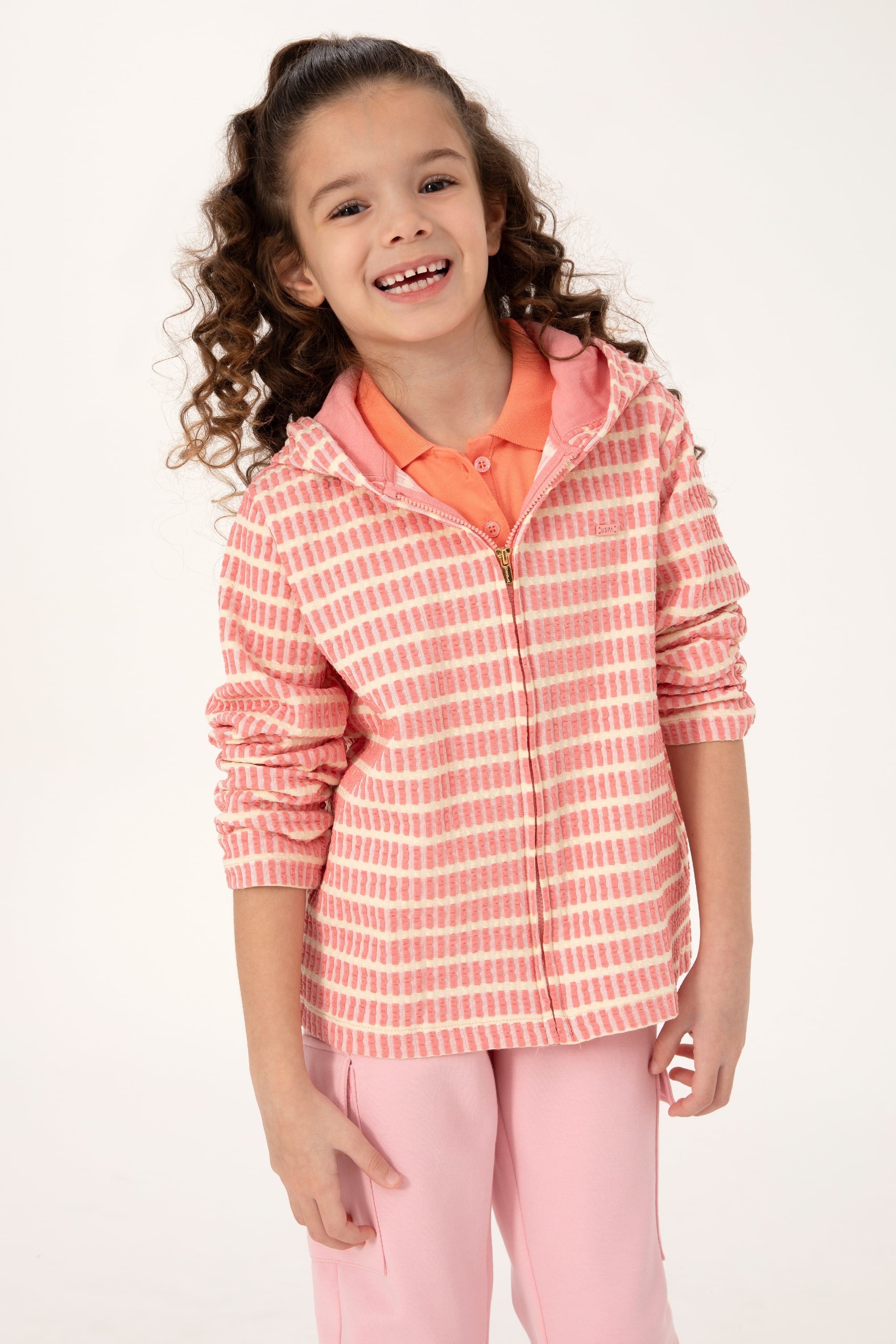 - Kız Çocuk Neon Pembe Kapüşonlu Fermuarlı Sweatshirt