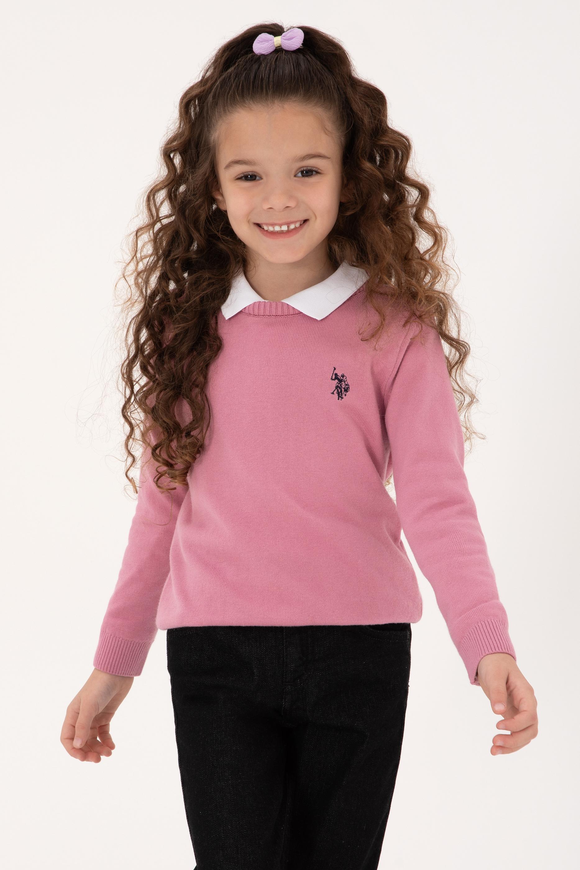 Kız Çocuk Pembe Bisiklet Yaka Basic Kazak