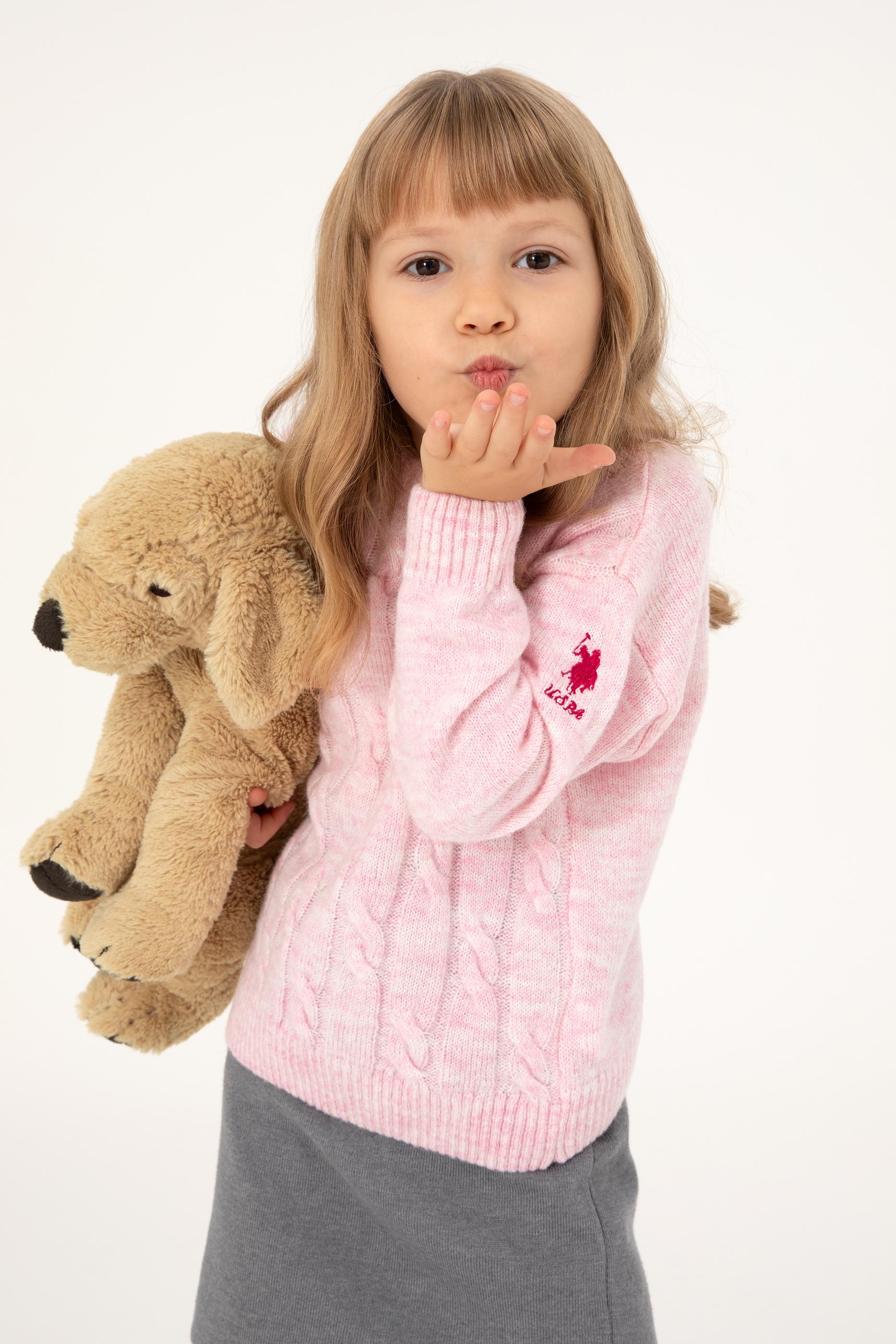 Kız Çocuk Pembe Bisiklet Yaka Kazak
