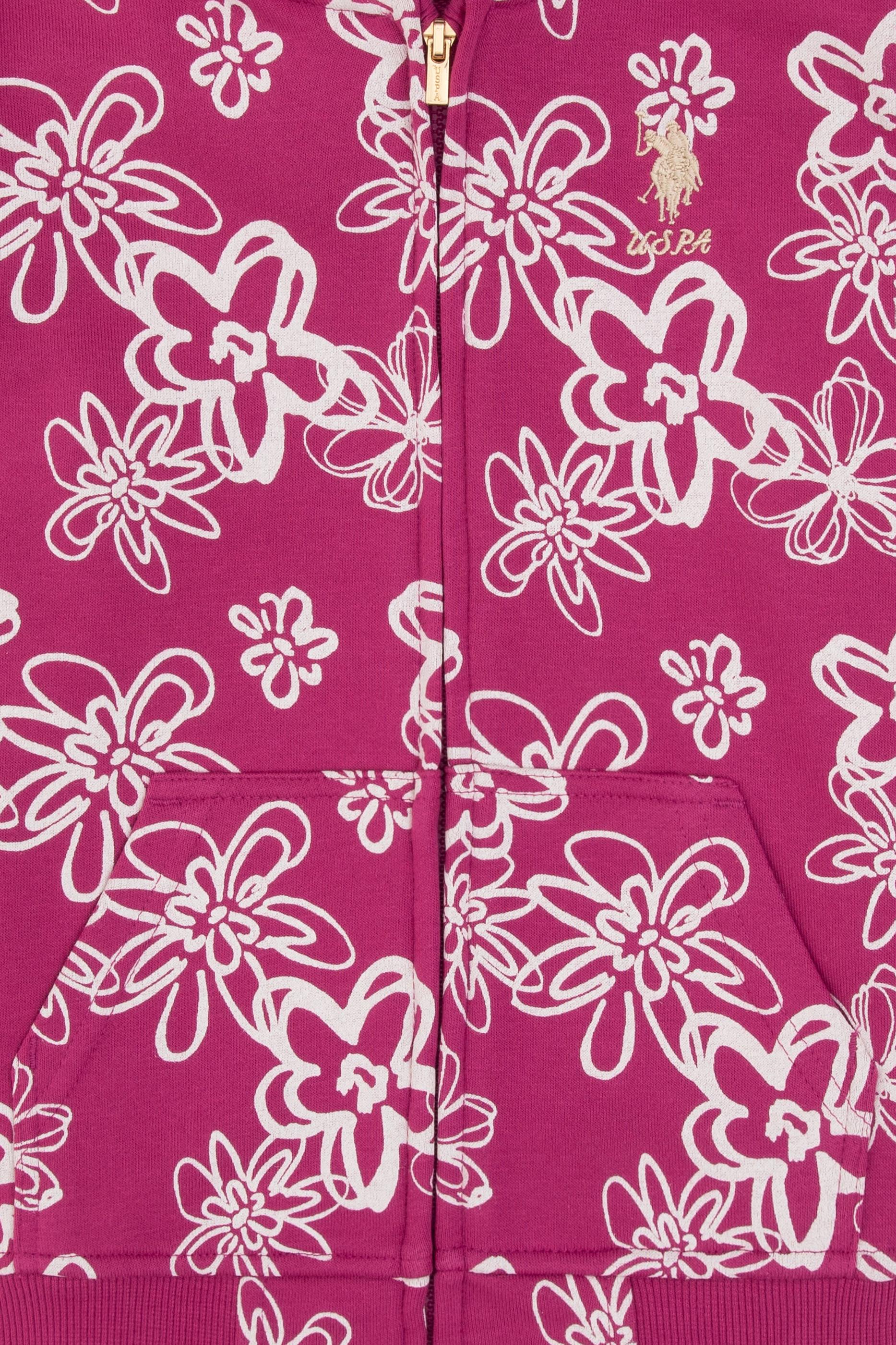 - Kız Çocuk Pembe Kapüşonlu Fermuarlı Çiçekli Sweatshirt