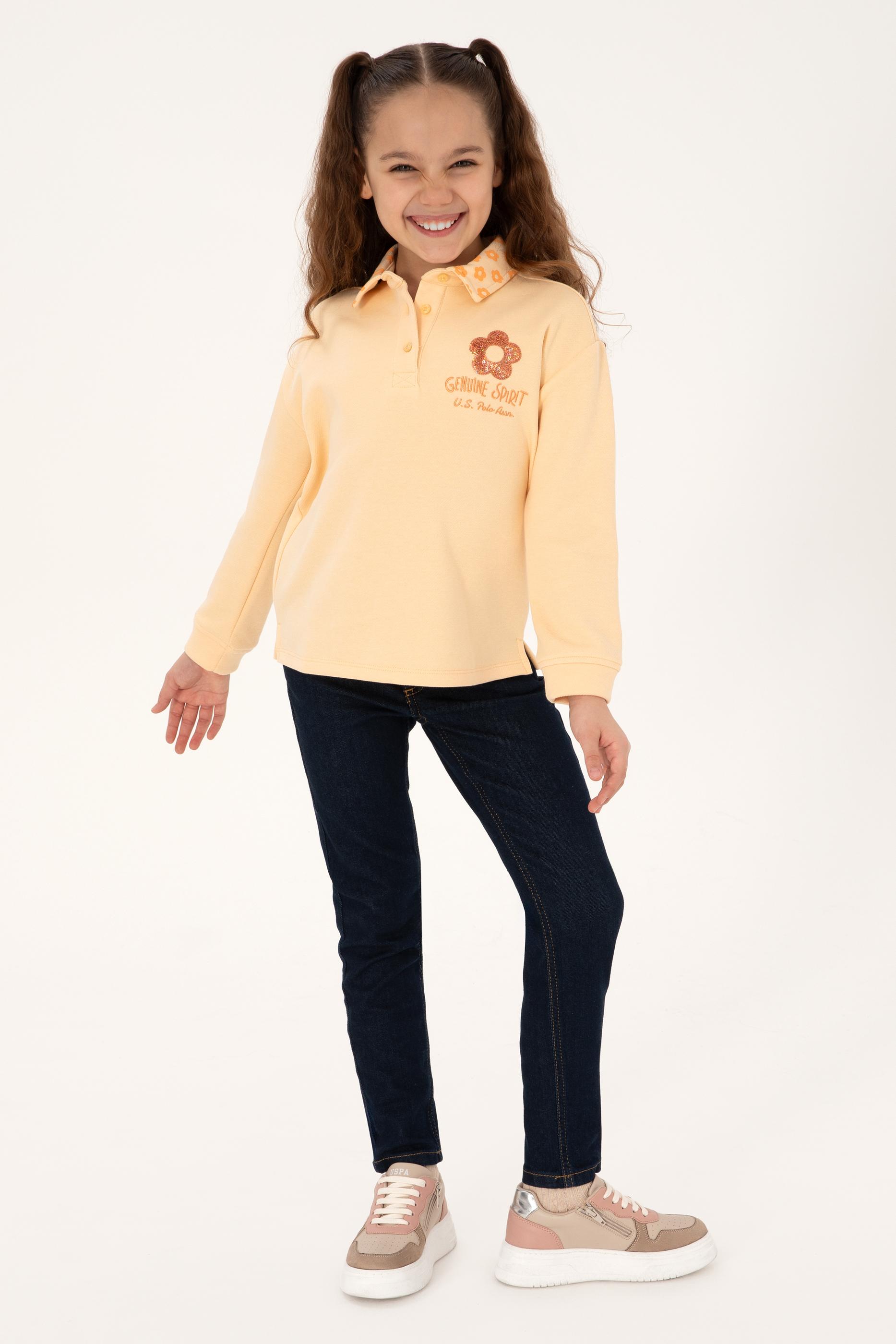 Kız Çocuk Pembe Polo Yaka Sweatshirt