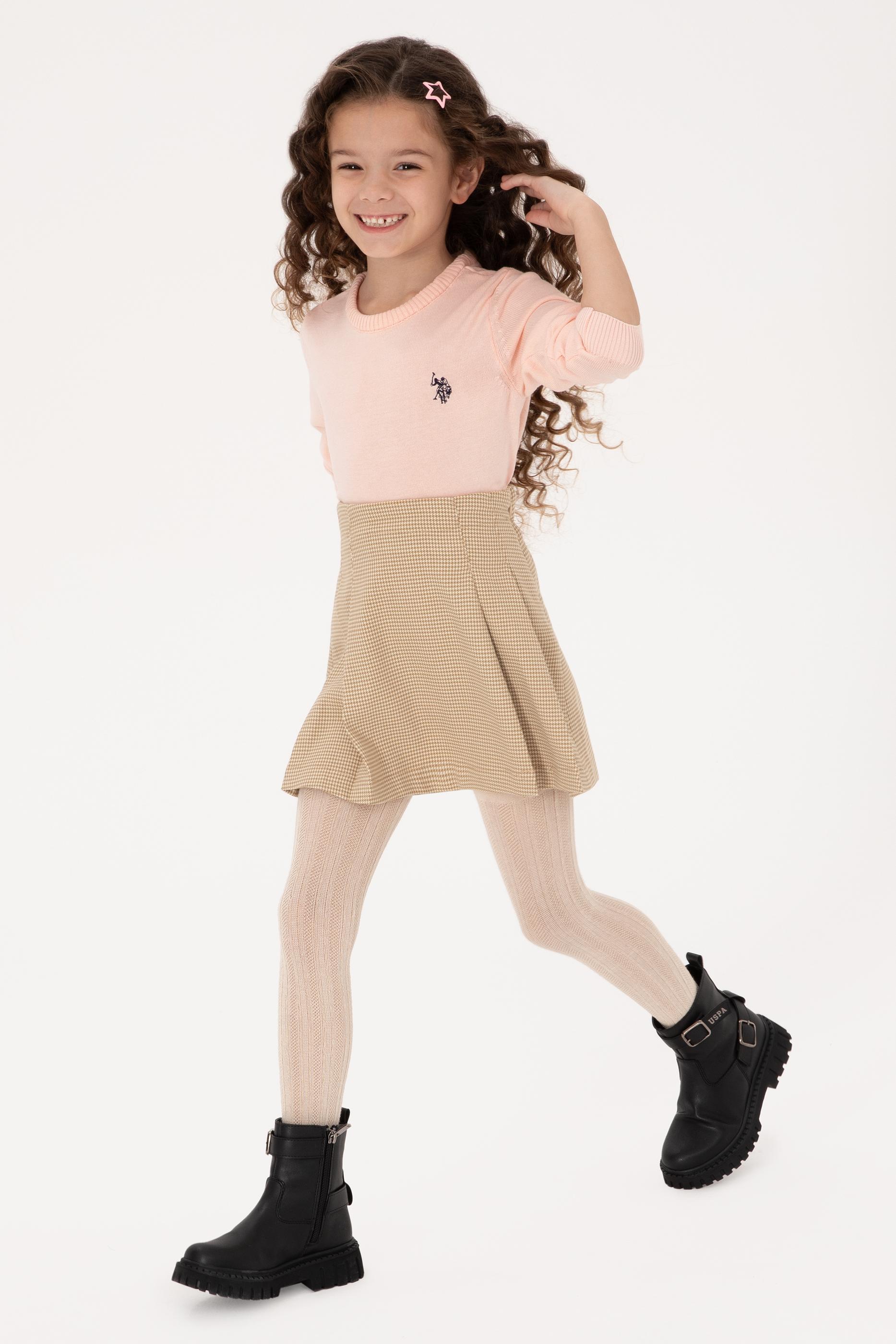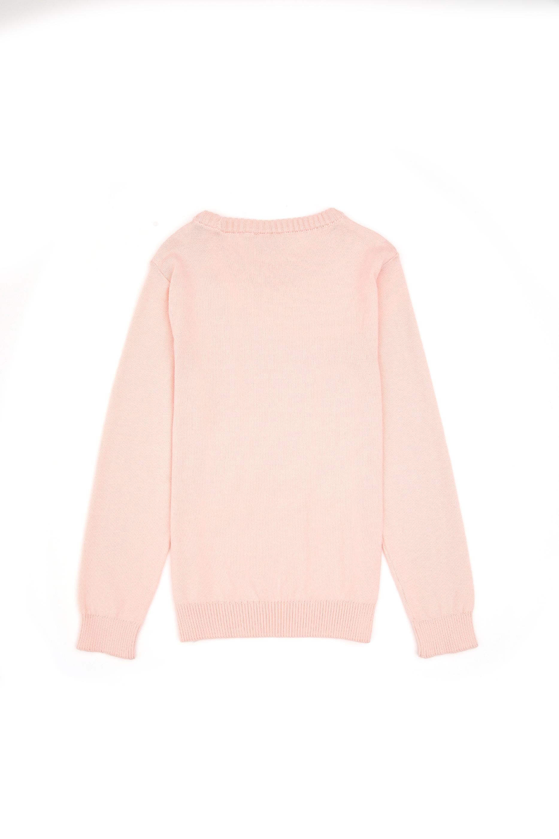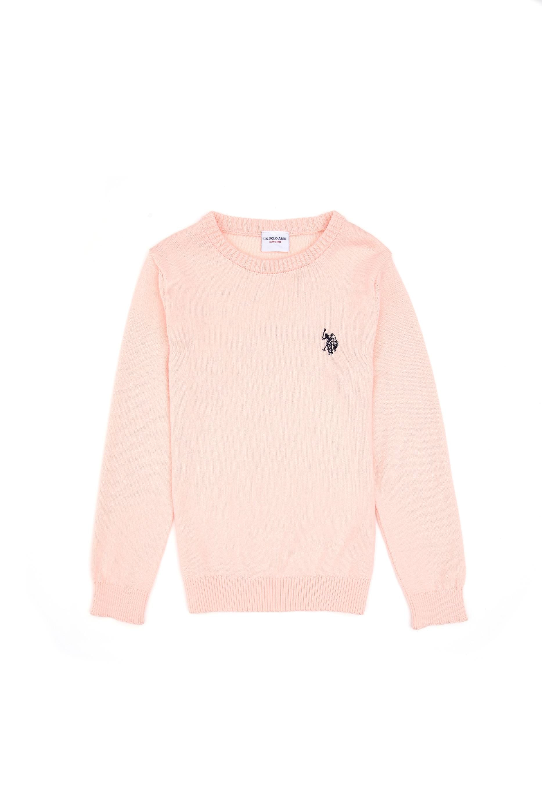 Kız Çocuk Pudra Bisiklet Yaka Basic Kazak