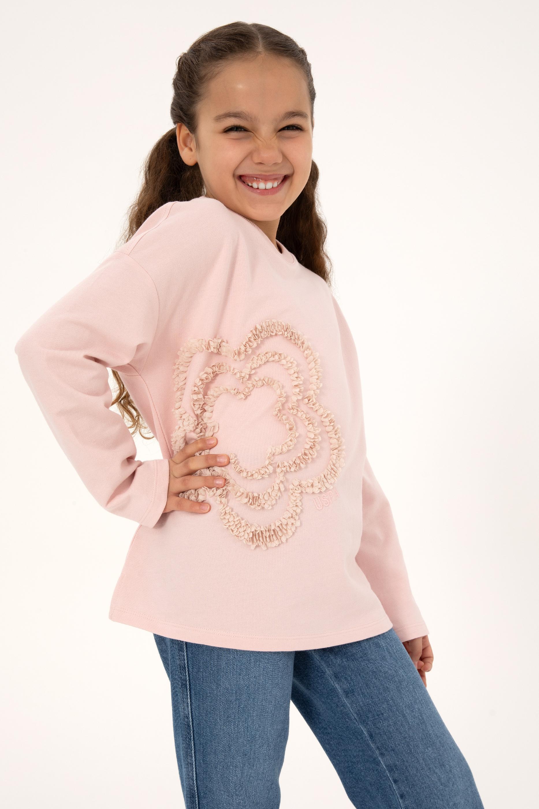 - Kız Çocuk Pudra Bisiklet Yaka Sweatshirt