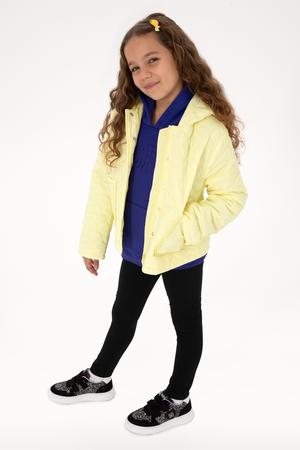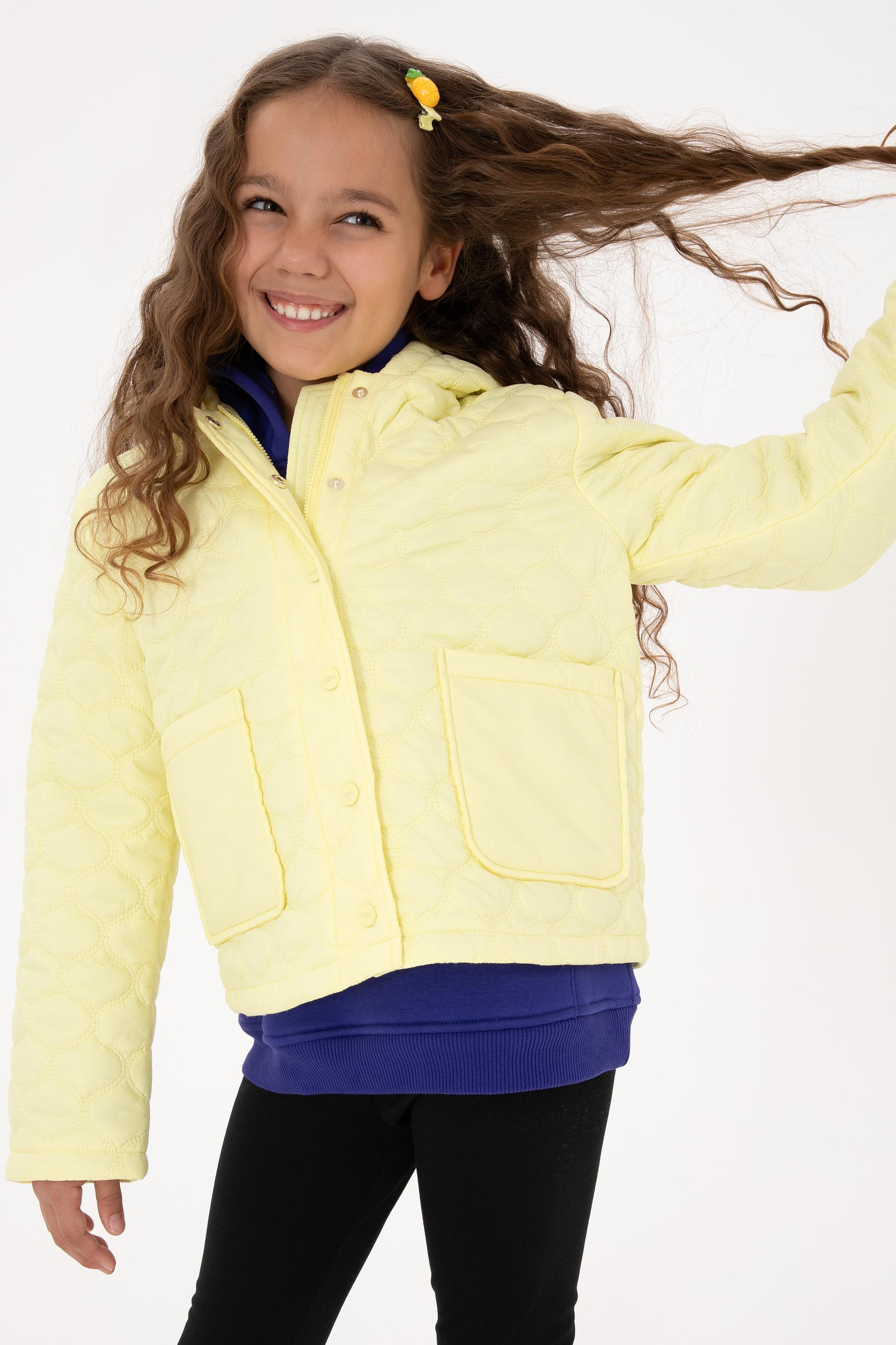 Kız Çocuk Sarı Kapitone Kapüşonlu Şişme Mont