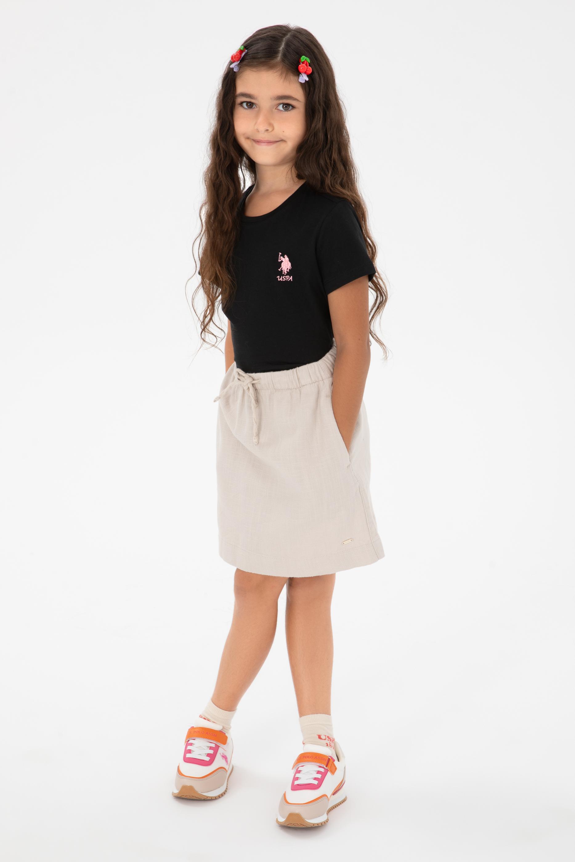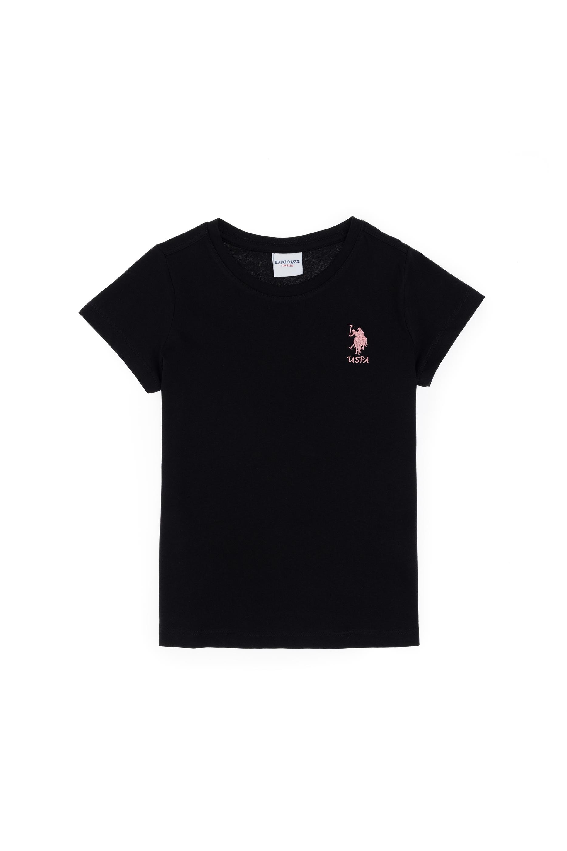 Kız Çocuk Siyah Bisiklet Yaka Basic Tişört