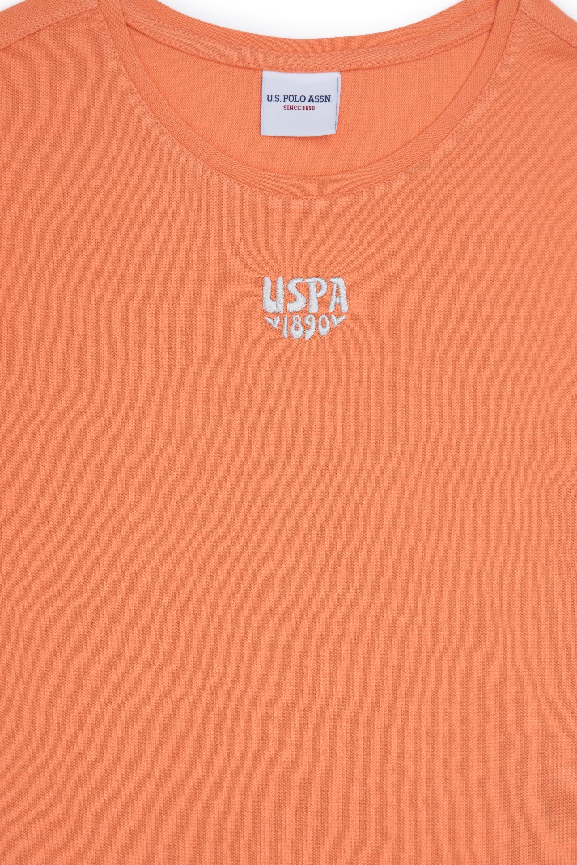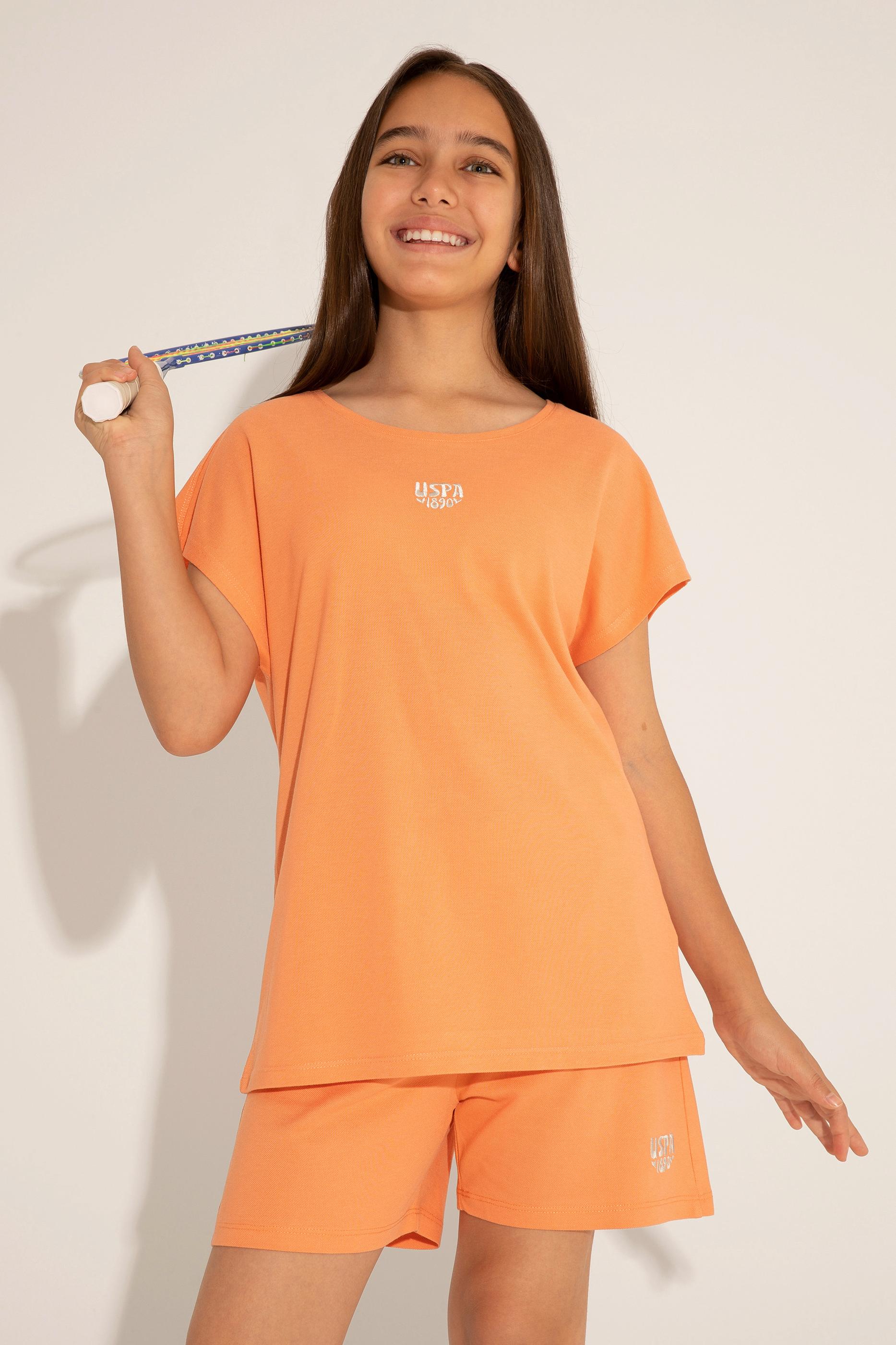 Kot şortlar, rahat eşofman altları veya renkli eteklerle kombinlenebilir. Spor ayakkabılar ya da sandaletlerle tamamlanarak enerjik ve dinamik bir görünüm elde edilebilir. Üzerindeki küçük marka baskısı, tişörtü sade ve modern bir havaya büründürürken, somon rengi ile çocuğunuzun gardırobuna canlılık katar.