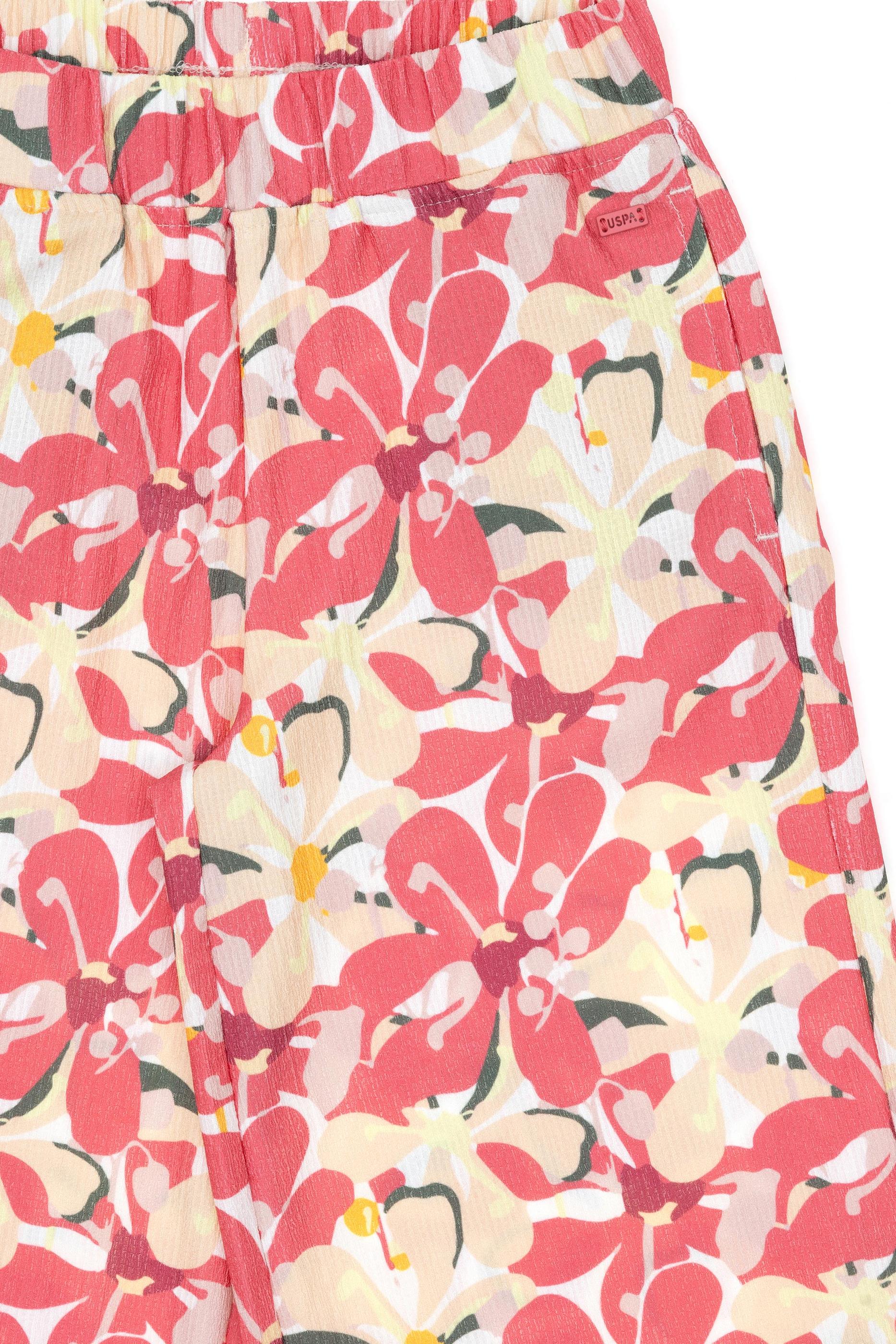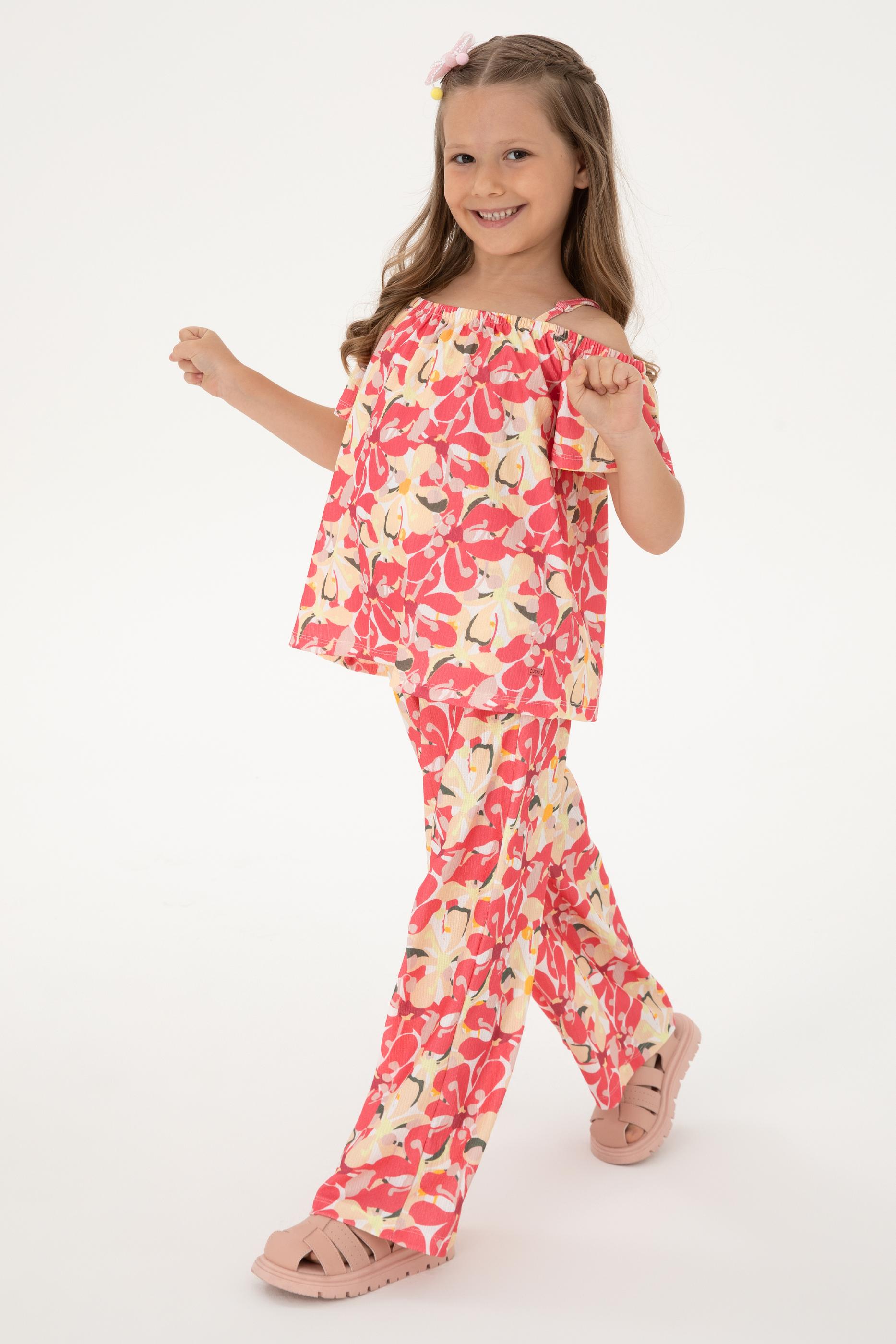- Kız Çocuk Turuncu Çiçek Desenli Örme Eşofman Altı