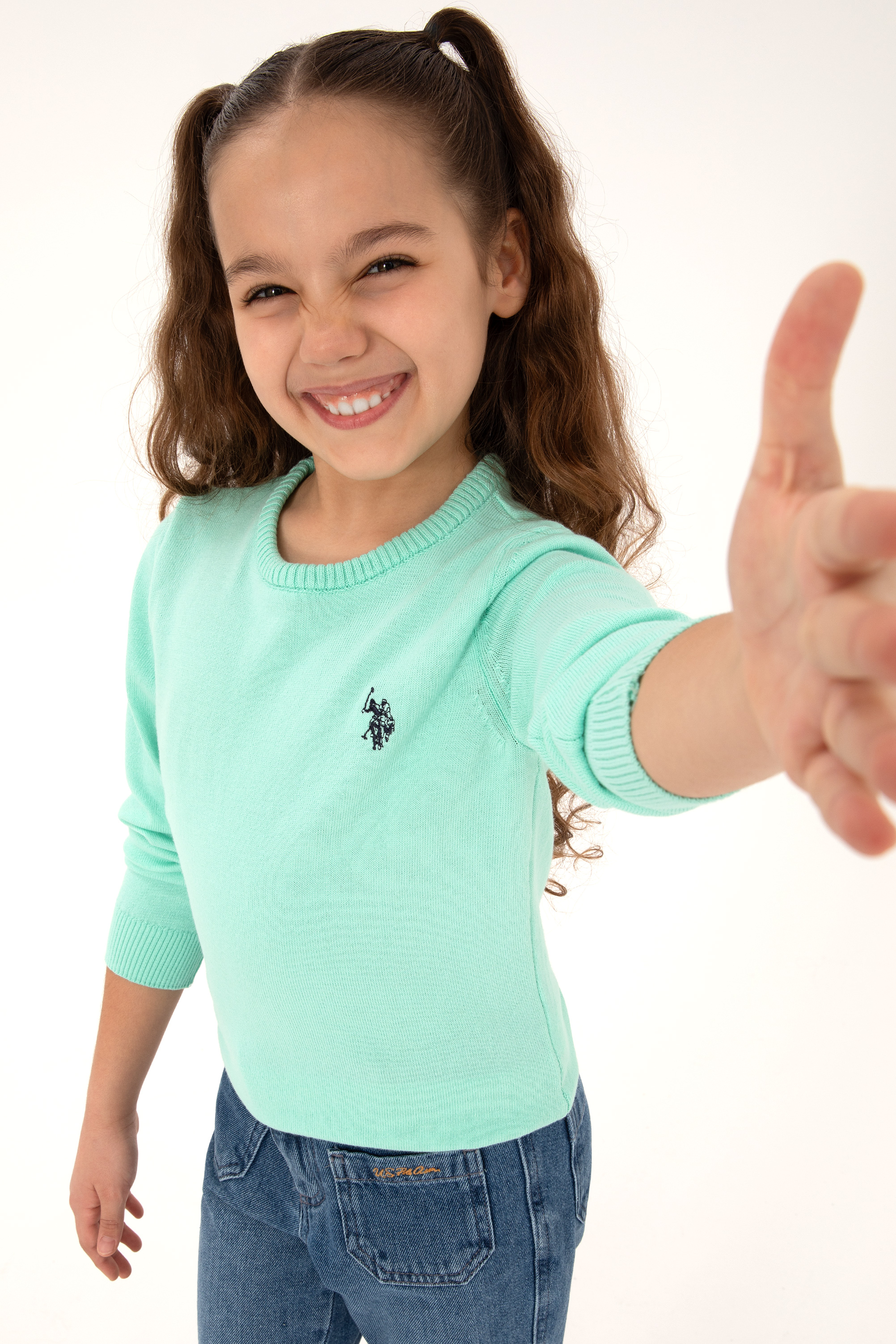 Kız Çocuk Yeşil Bisiklet Yaka Basic Kazak